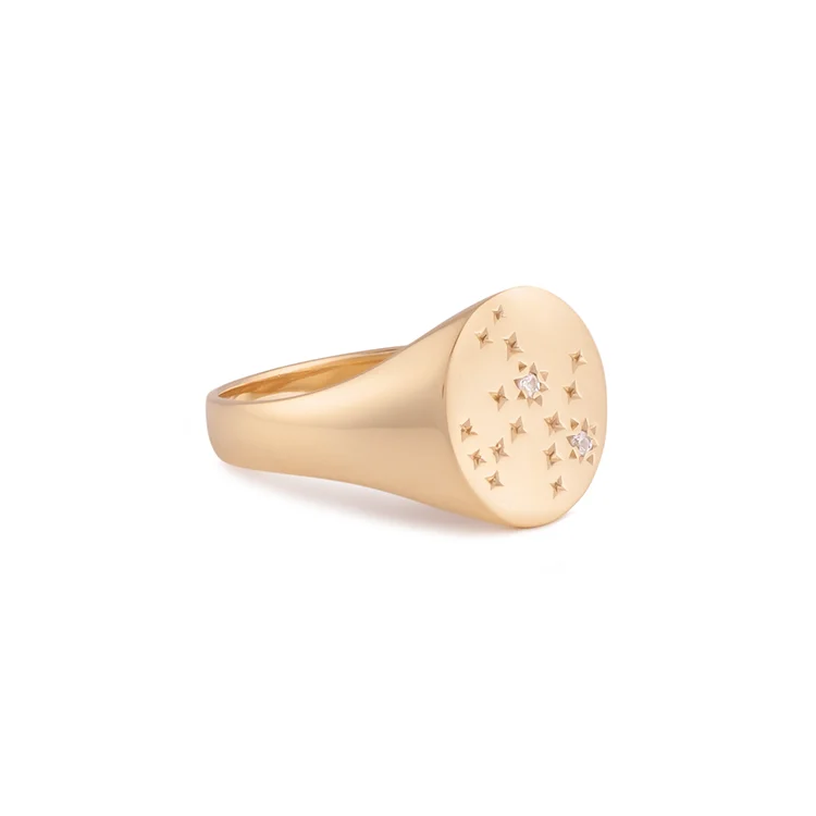 Gold Plated Engraved Sterling Silver Jewelry Ring Stainless Steel Astrology Zodiac Jewelry Zodiac Sign Silver 925 Ring