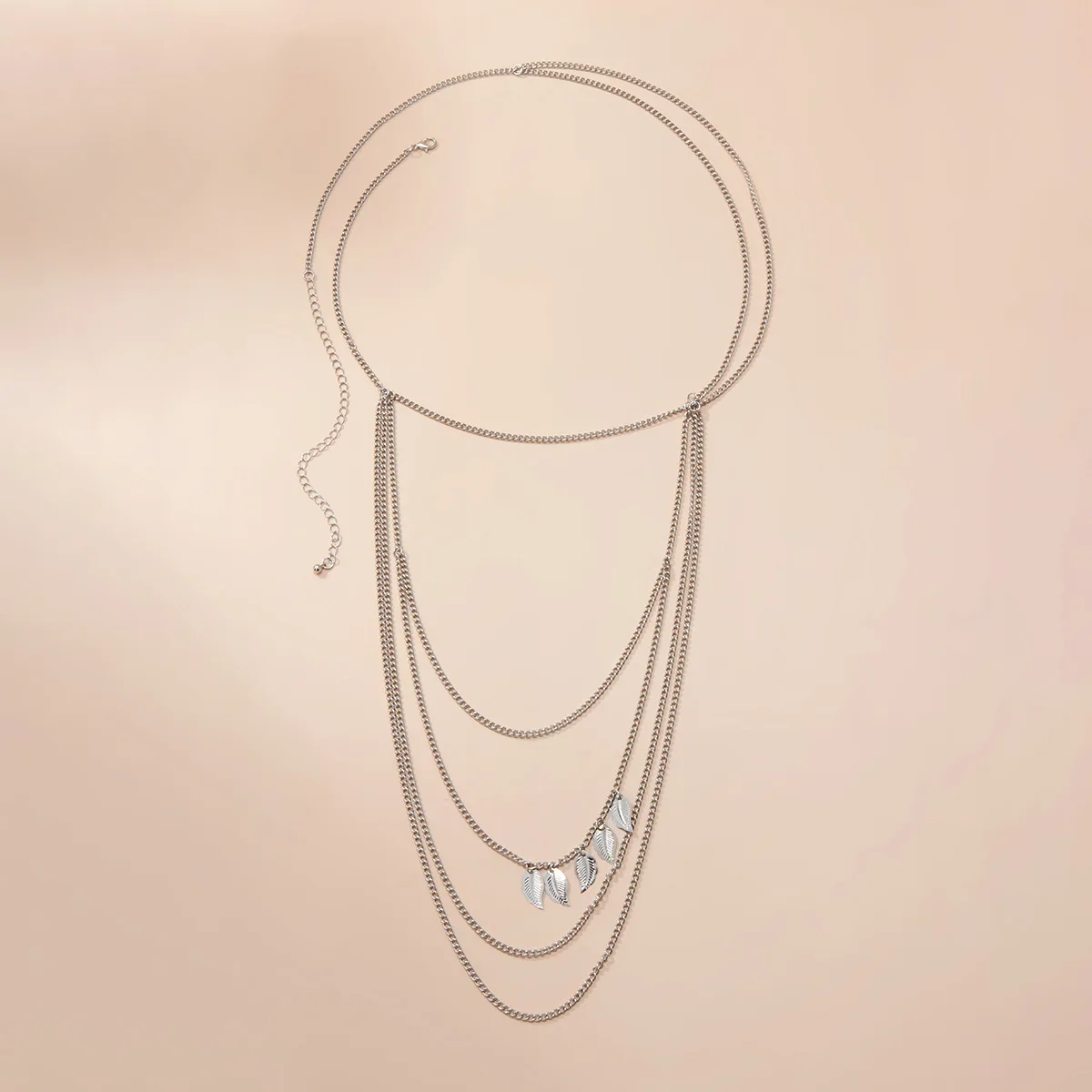 Wholesale Multi-layer Tassel Metal Chain Holiday Style Shoulder Necklace Simple Personality Leaf Ethnic Style Body Chain