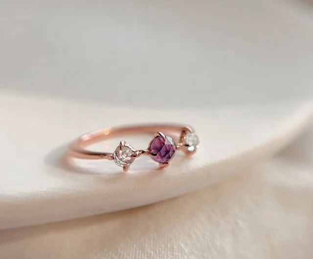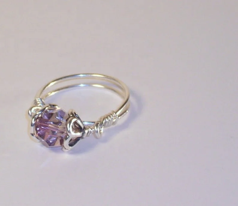 Wholesale Women Jewelry Fashion Finger Ring Custom High Quality Gemstone Raw Purple Crystal Rings Sterling Silver