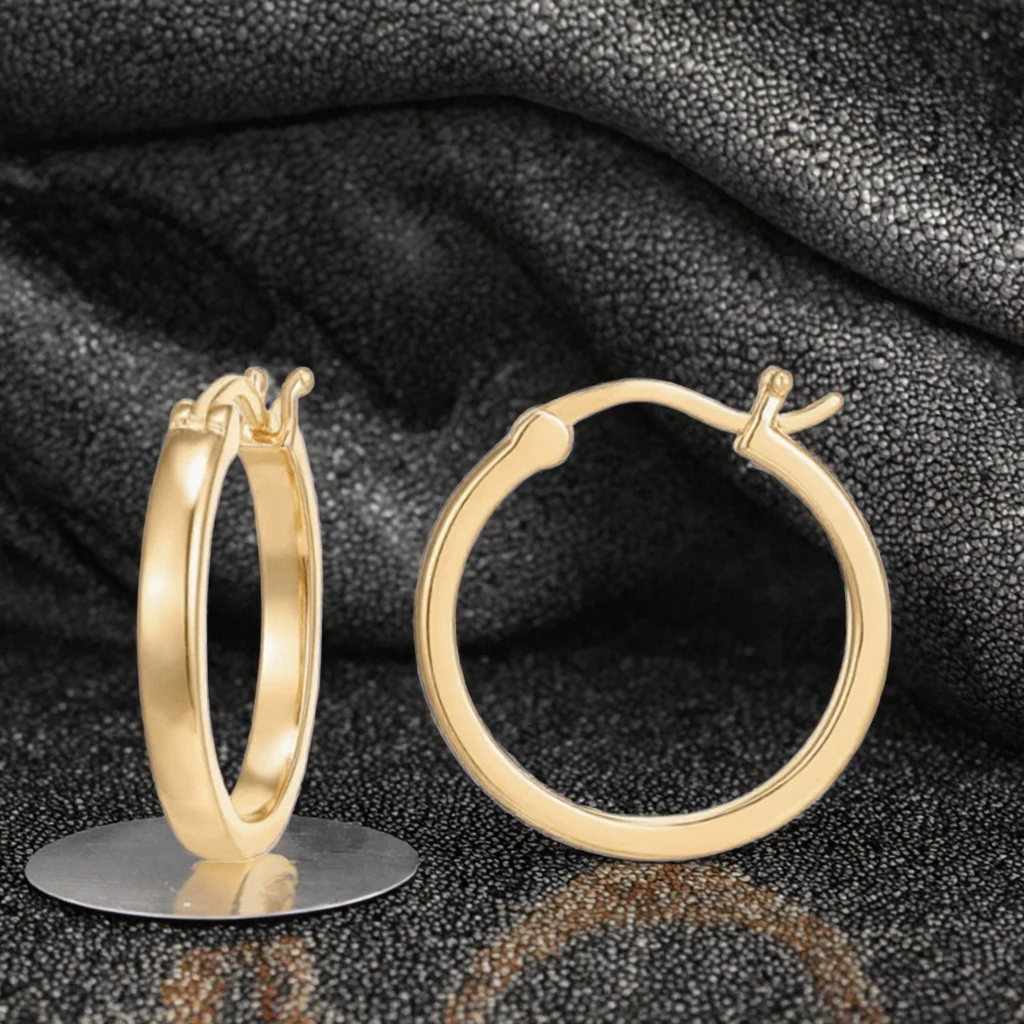 Customized Gold Plated Large Round Hoop Earrings 925 Silver Smooth Round Shape Geometric Pattern Fine Jewelry for Woman
