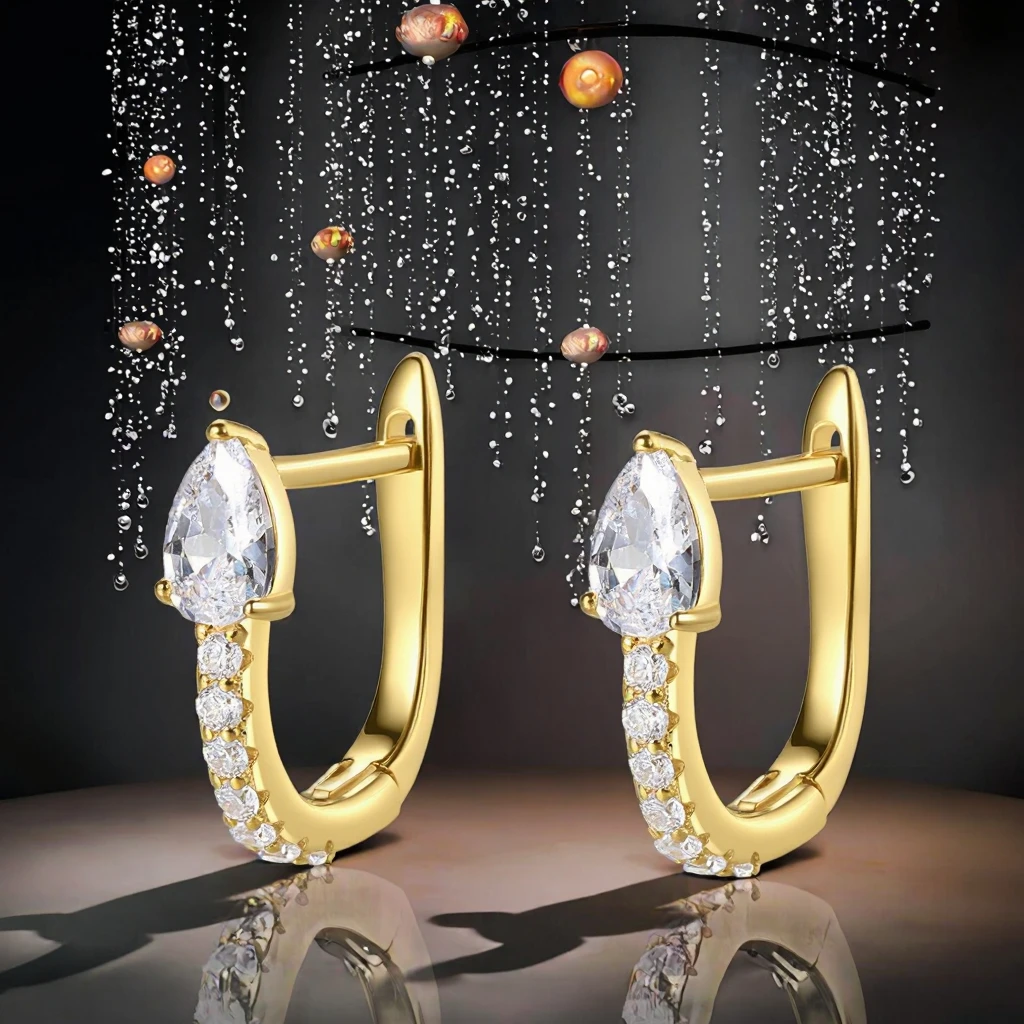 Customized 925 Silver Earrings with U-shaped Ear Hooks and Pave-set Zircon for Woman