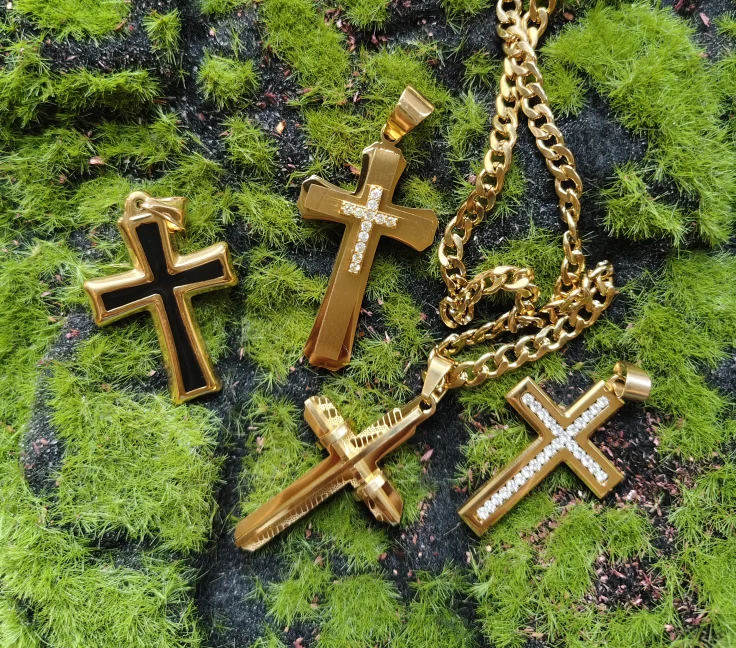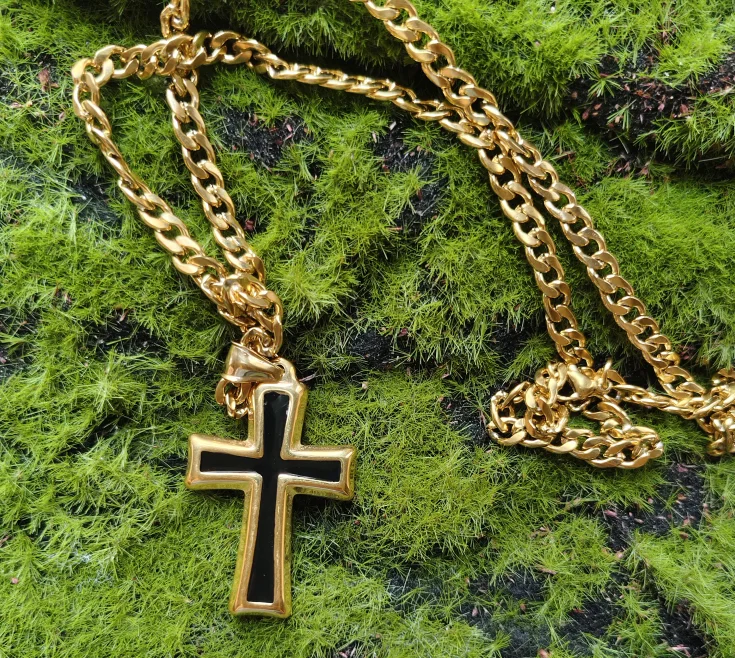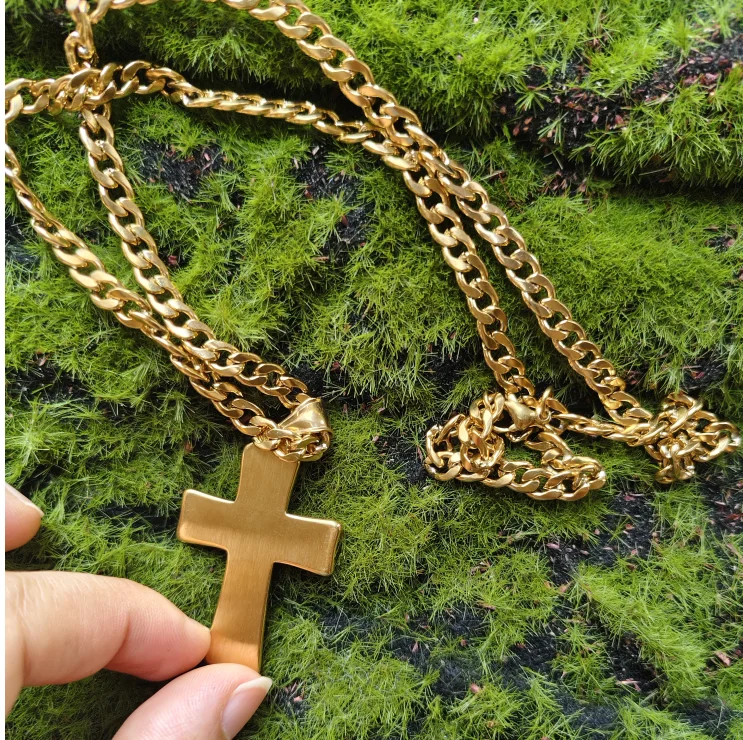 18K PVD Gold Plated Compass Necklace Stainless Steel Cross Pendants Men's Jewelry Cross Pendant