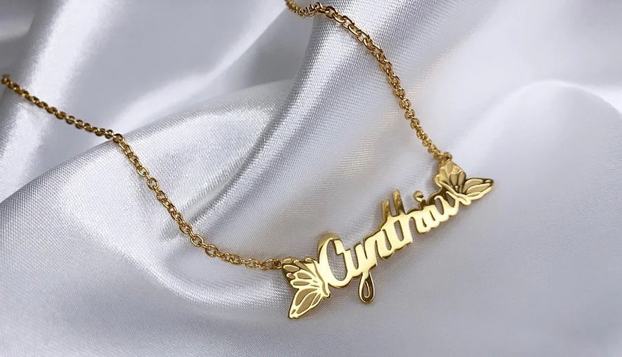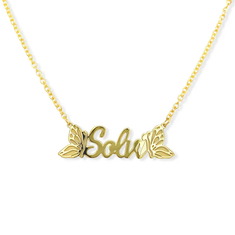 High Quality Jewelry butterfly Stainless Steel Personalized Custom Name Necklace 18k Gold Plated