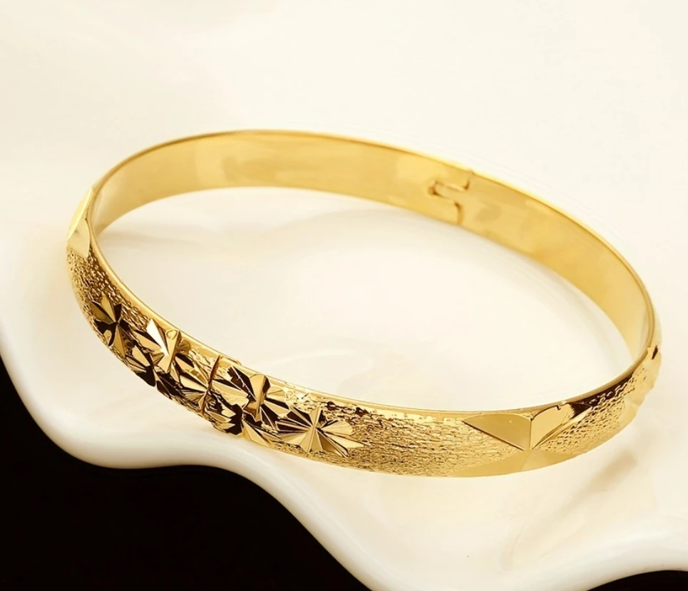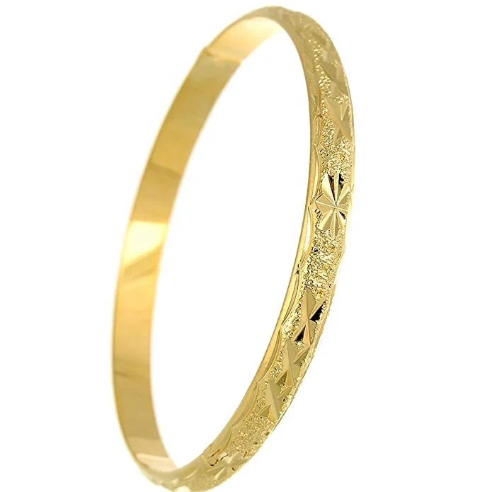 Custom Gold Color Jewelry Carved Engraving Cross Bangle Dubai Women's Bridal Wedding Jewelry Vietnam Sand Gold Bracelet