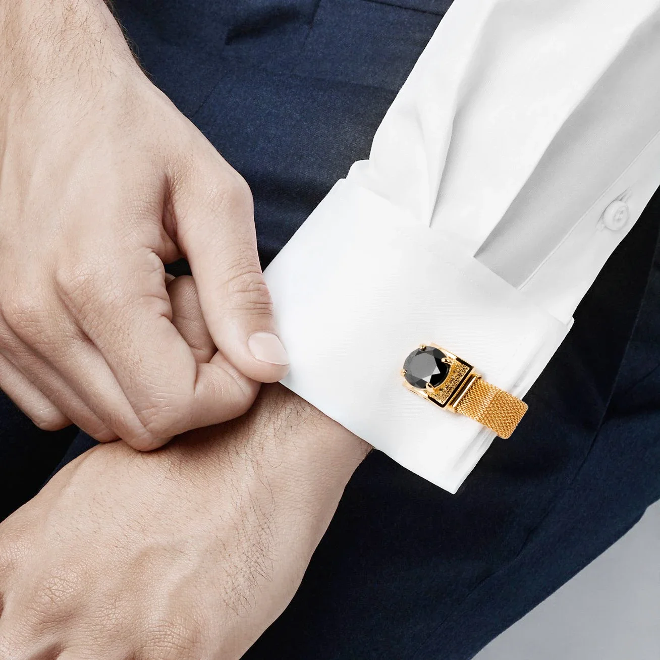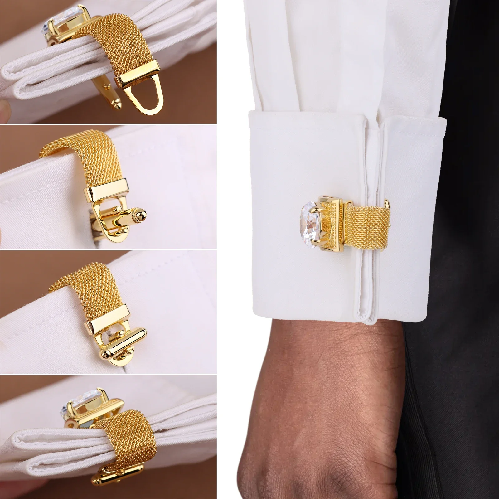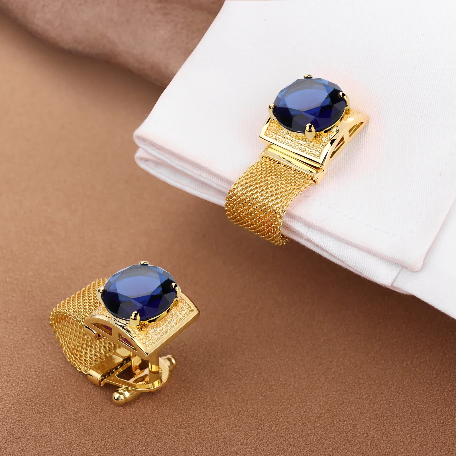 Luxury Blue Stone Cufflinks for Men Gold Plated Mesh Design Brass Material Business Wedding Custom Jewelry Gift