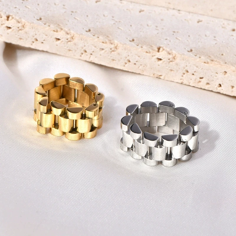 Factory Direct Sales European and American New Stainless Steel Ring Men's Simple Style Ring Watch Chain Design Hip Hop Jewelry