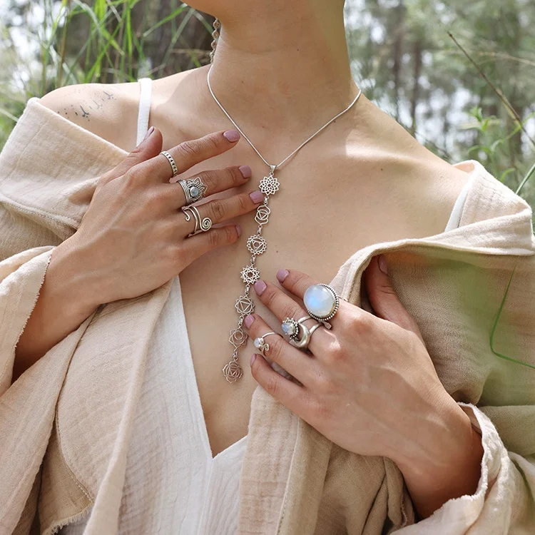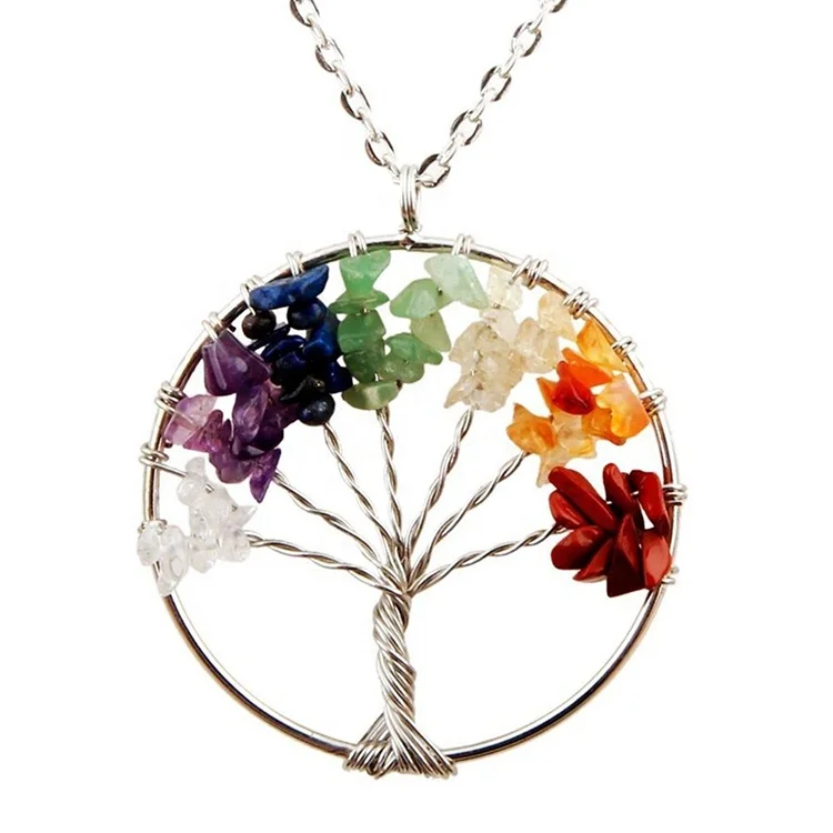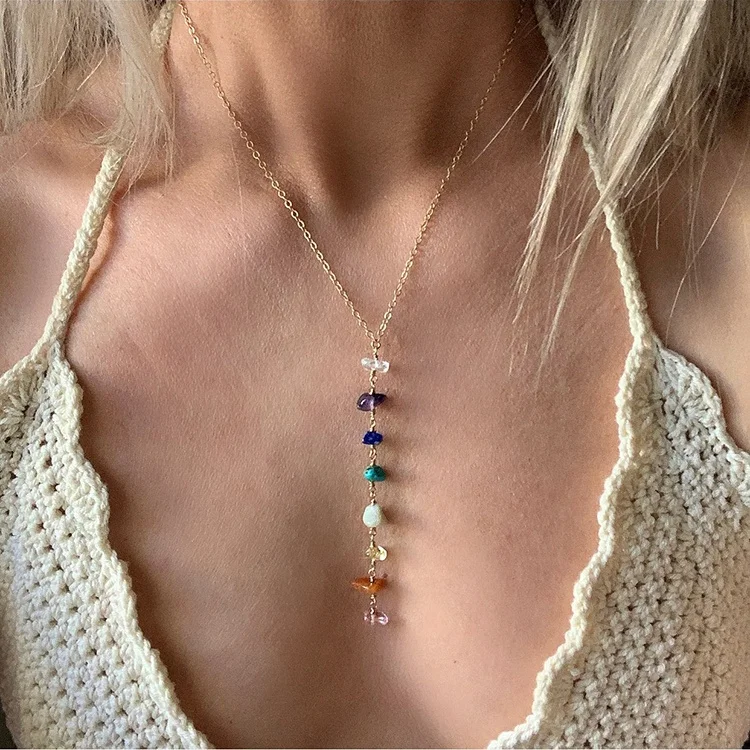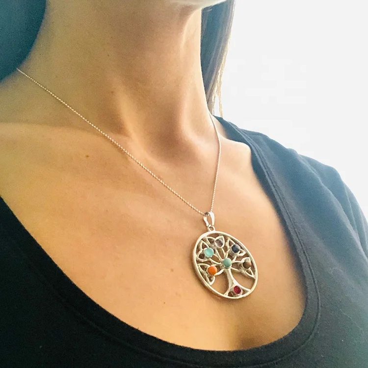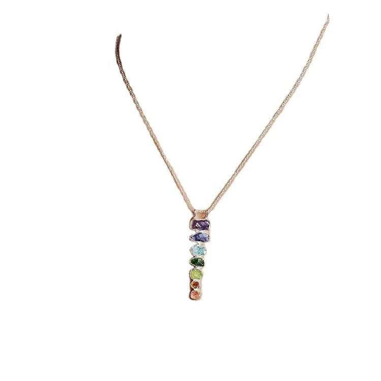Custom Rainbow 7 Chakra 925 Sterling Silver Pendant Necklace Multicolor Natural Stone Seven Chakra Necklace