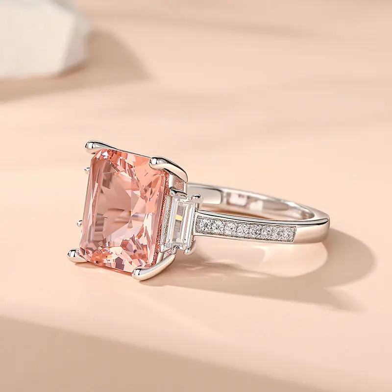 Custom 925 Sterling Silver Square Natural Water Gemstone Ring Fine Ring OEM ODM Supplier Offers a Variety of Gemstones