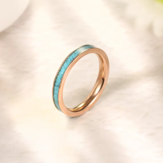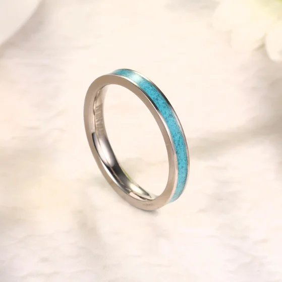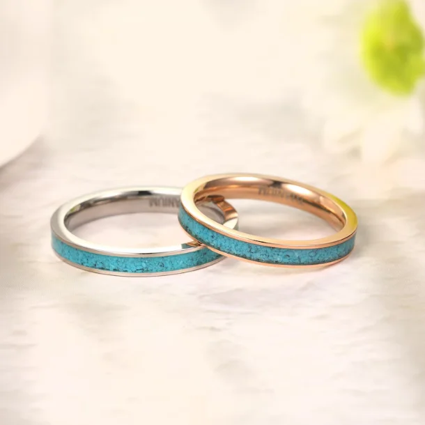 Stainless Steel Turquoise Inlay Ring Wedding Band Couples Fashion Jewelry Custom Engagement Promise Ring Wholesale OEM ODM