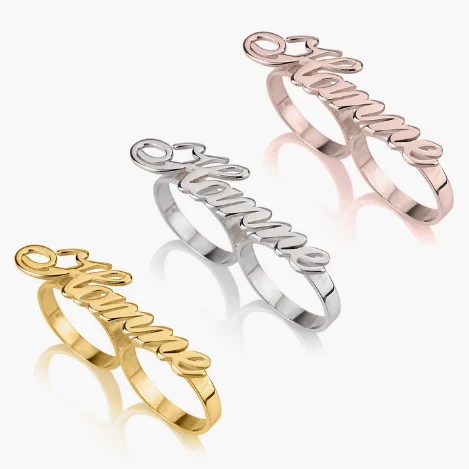 Wholesale Custom Engraved Name Two Finger Ring for Couple Lovers Personalized Jewelry Available Materials