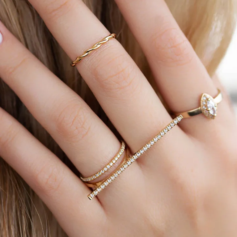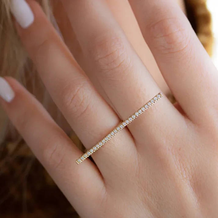 Custom Women's Adjustable Double Finger Sparkling Ring New Geometric Zircon Design European American Style Made 925 Silver