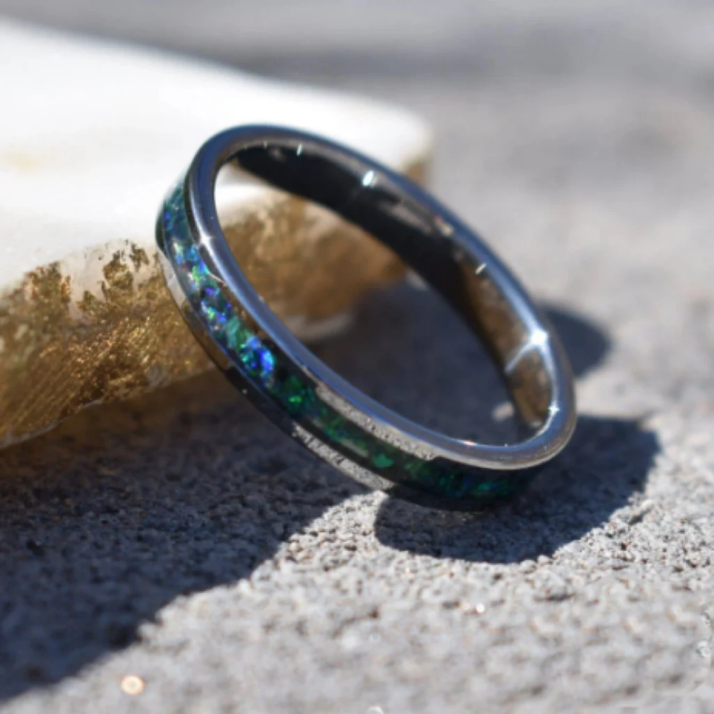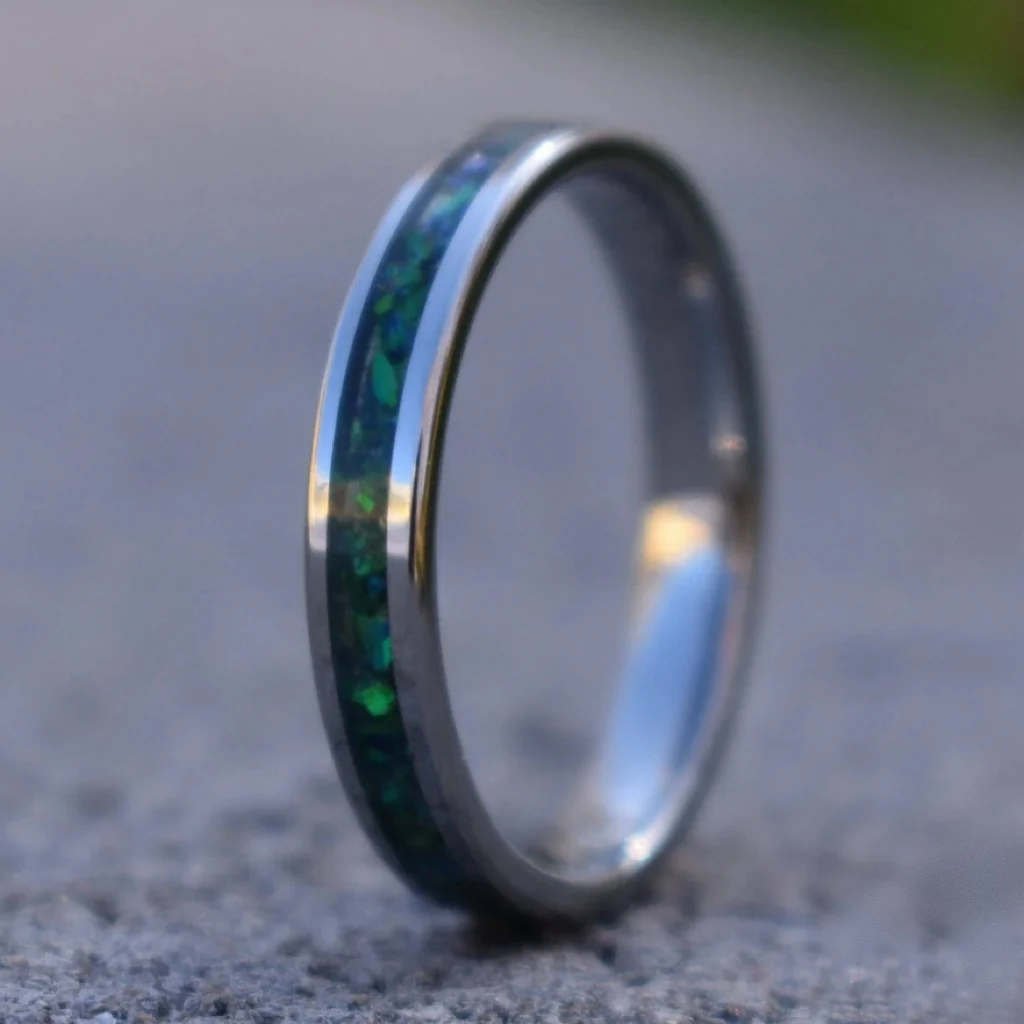 Wholesale Natural Opal Inlay Ring & Crush Opal Jewelry Customizable Emerald Stainless Steel Wedding Gemstone Inlay Ring Band