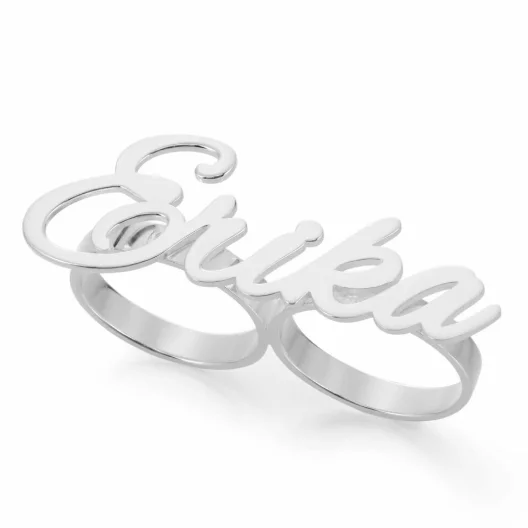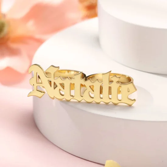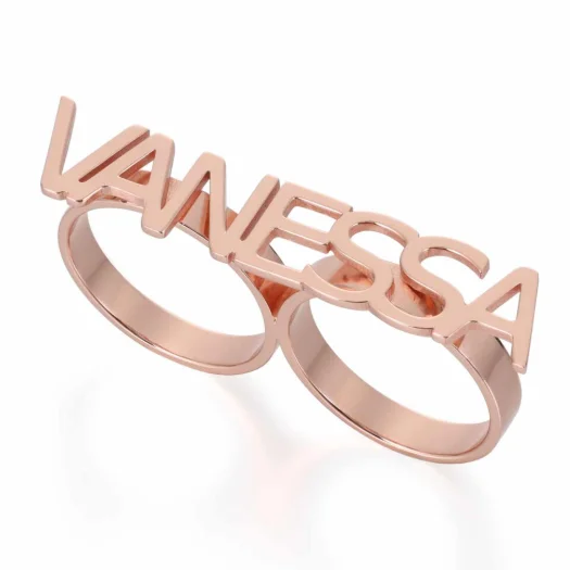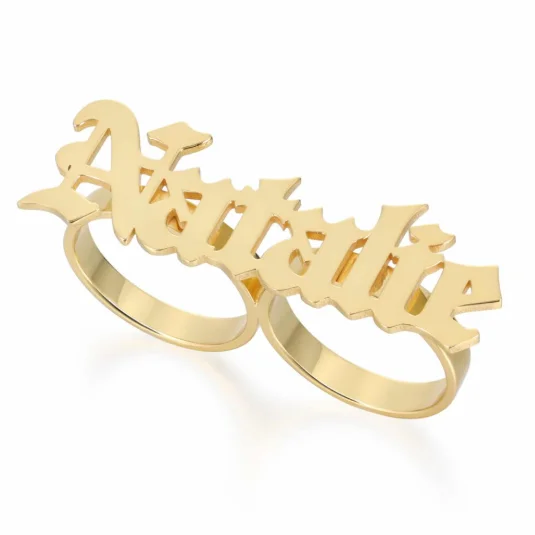 Custom Name Letter Two Fingers Ring Gold Plated Eco Brass Fashion Jewelry for Men Women Classic Party Rings