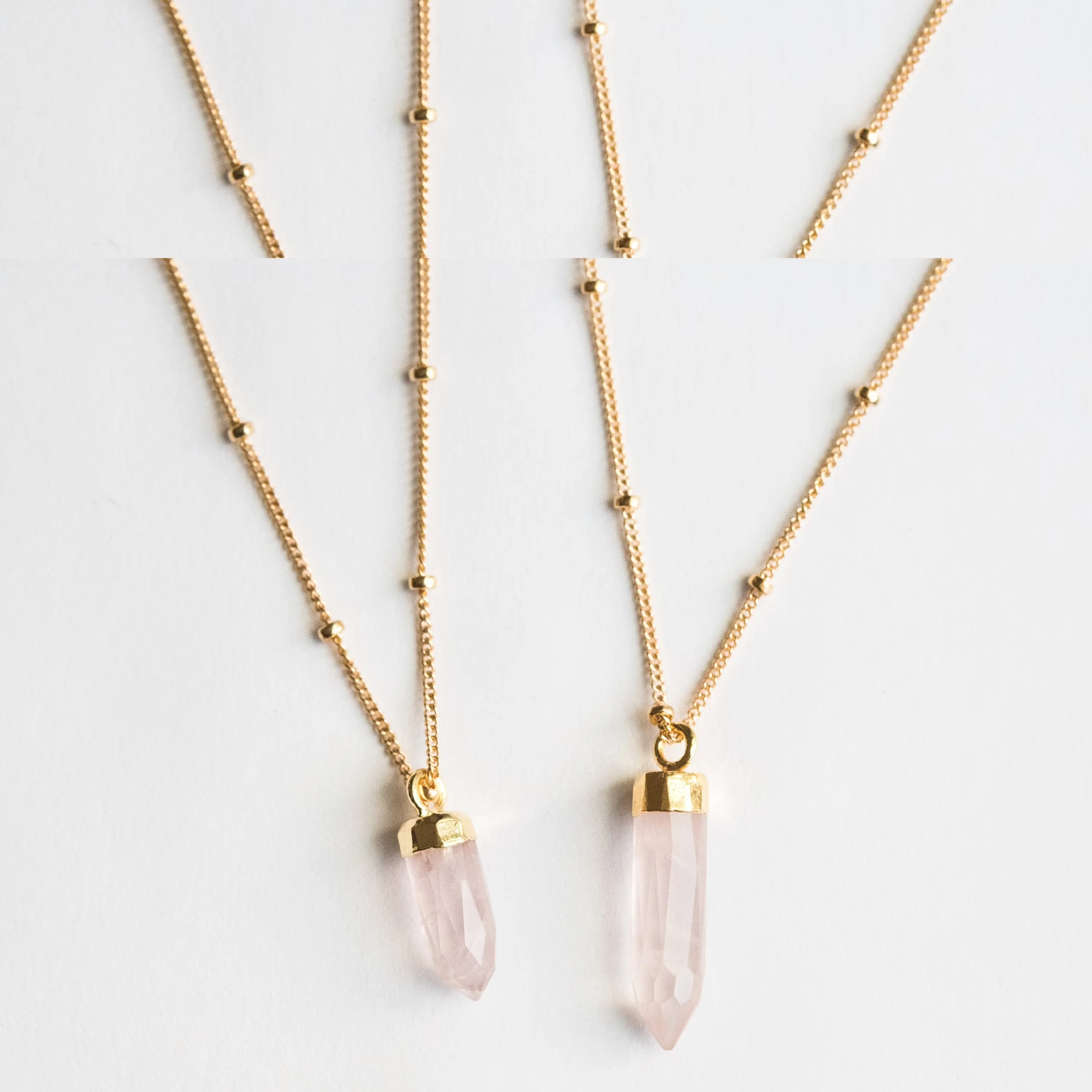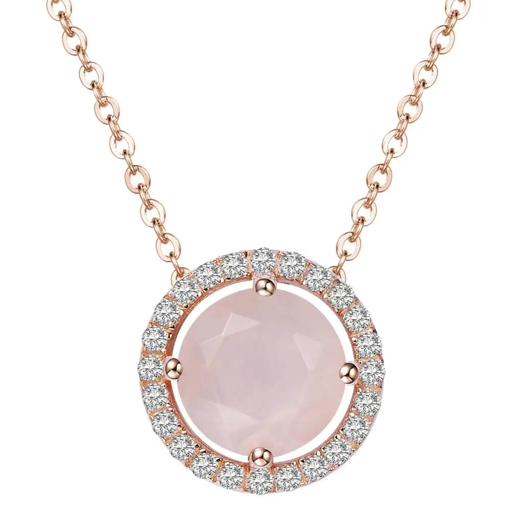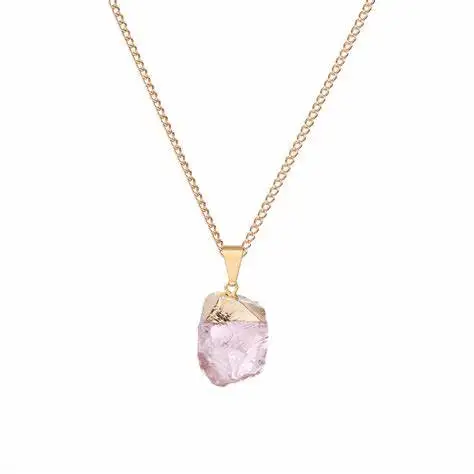 Custom Women Healing Raw Gemstone Natural Stone Stainless Steel Jewelry Birthstone Geometric Crystal Pendants Rose Quartz Neckla