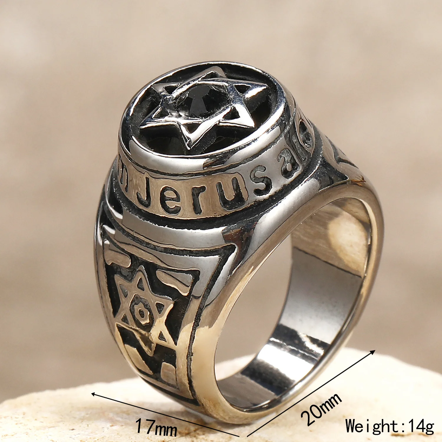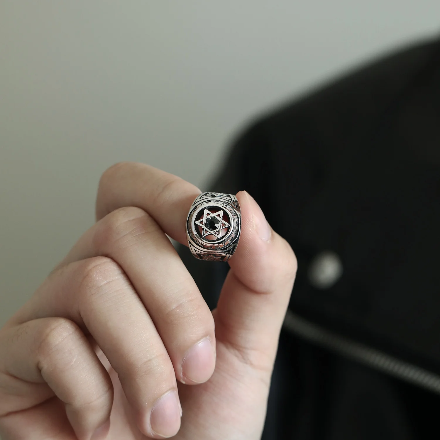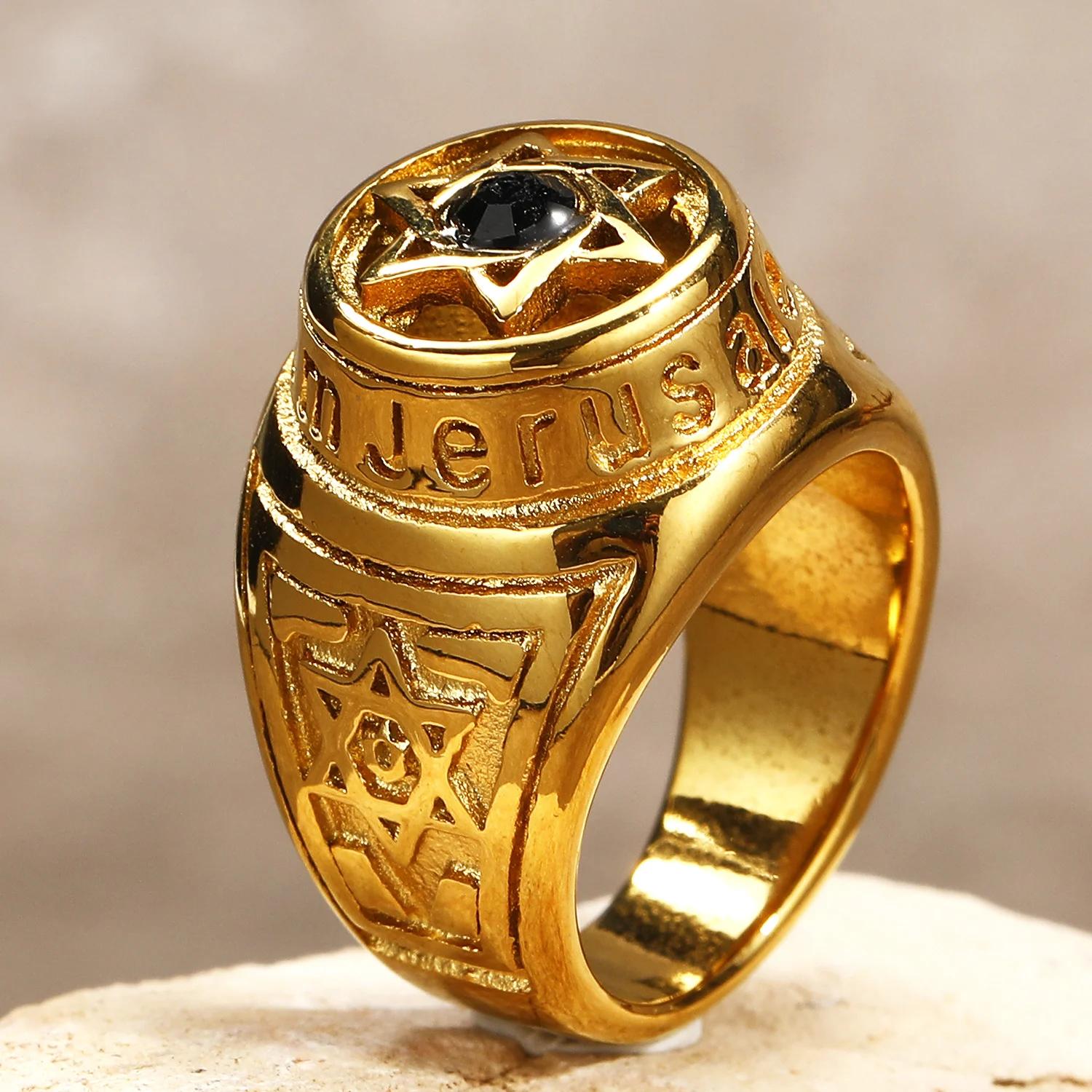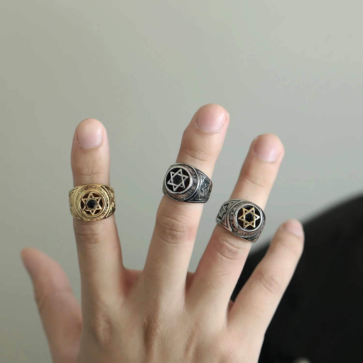 Custom Six Pointed Star Retro Style 18k Gold Plated Rings Stainless Steel Jewelry for Man