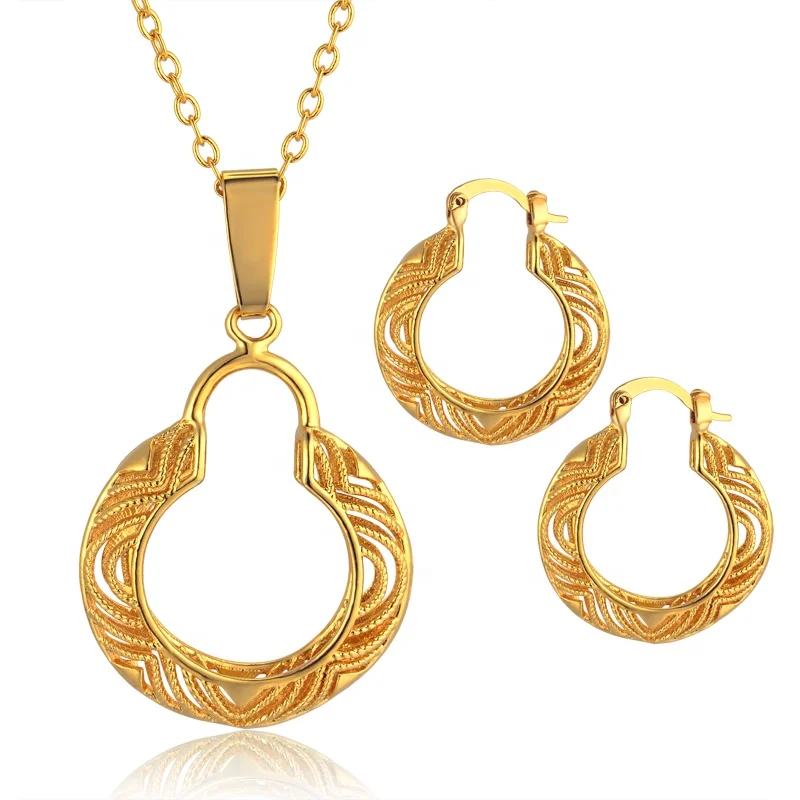 Full Custom Earrings and Necklace Set Jewelry Fashion 18K Gold Plated Women Earing Set