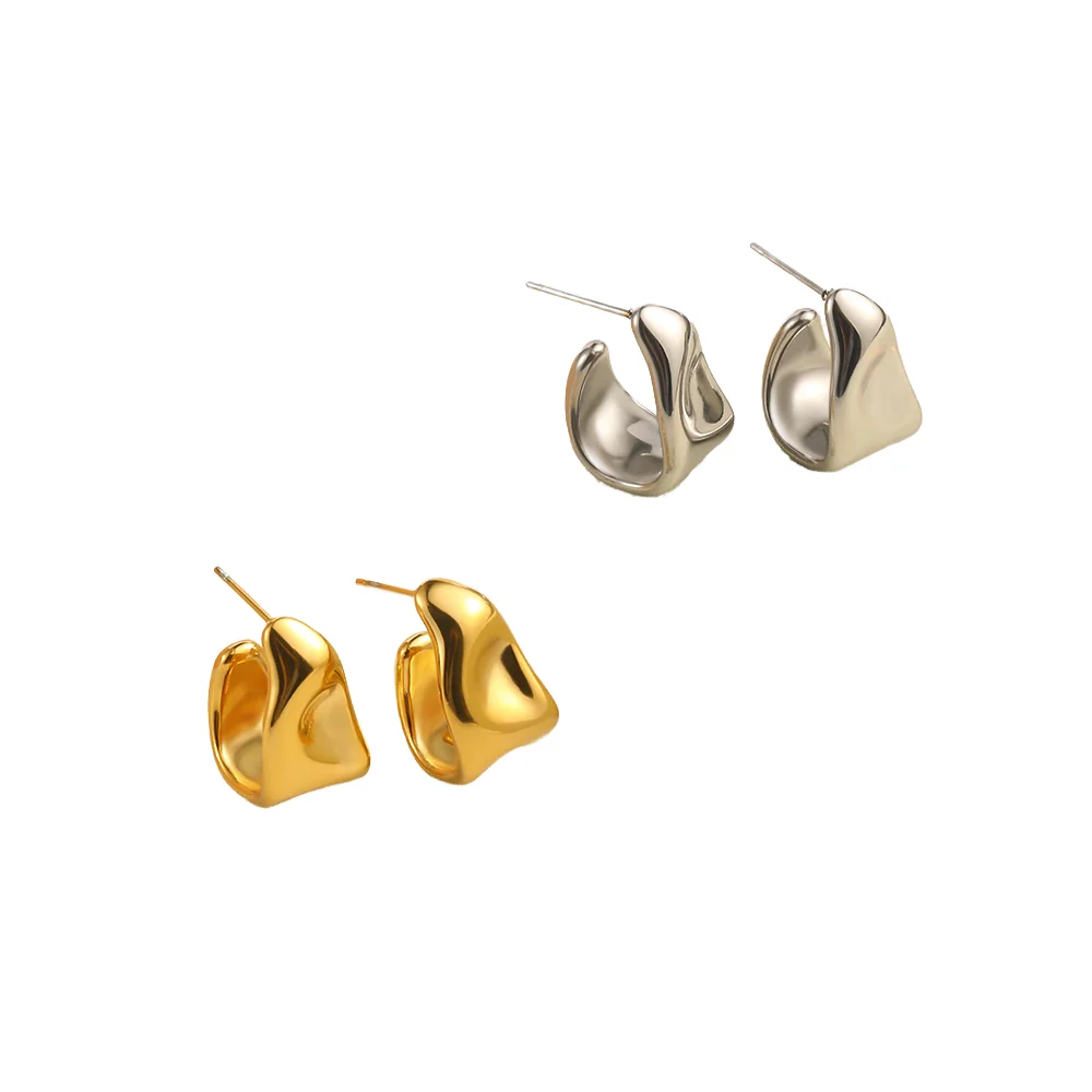 Customized AIU Gold Plated Stainless Steel Fashion Irregular C Wide-shaped Earrings Geometric Bend C Hoop Earrings