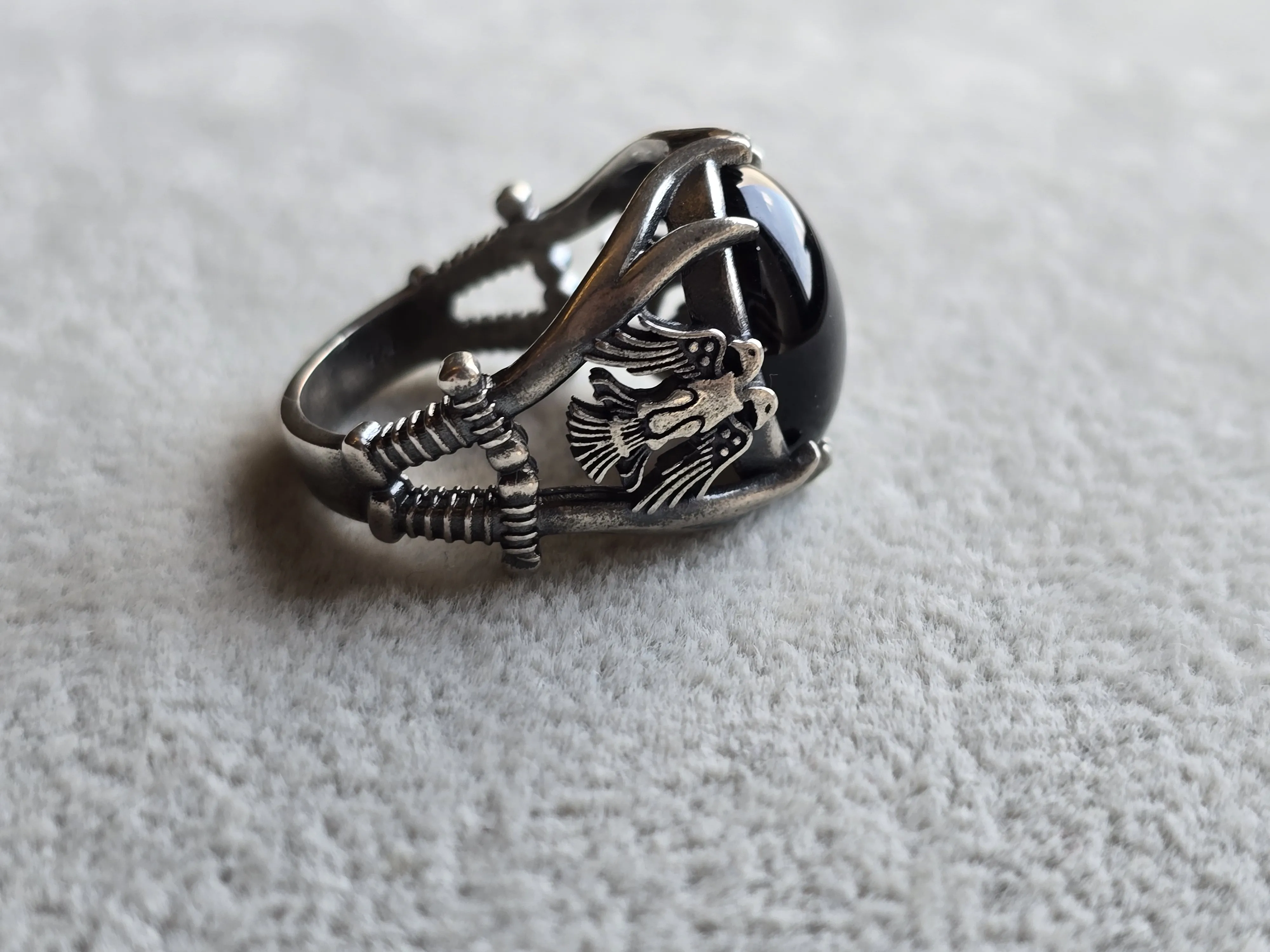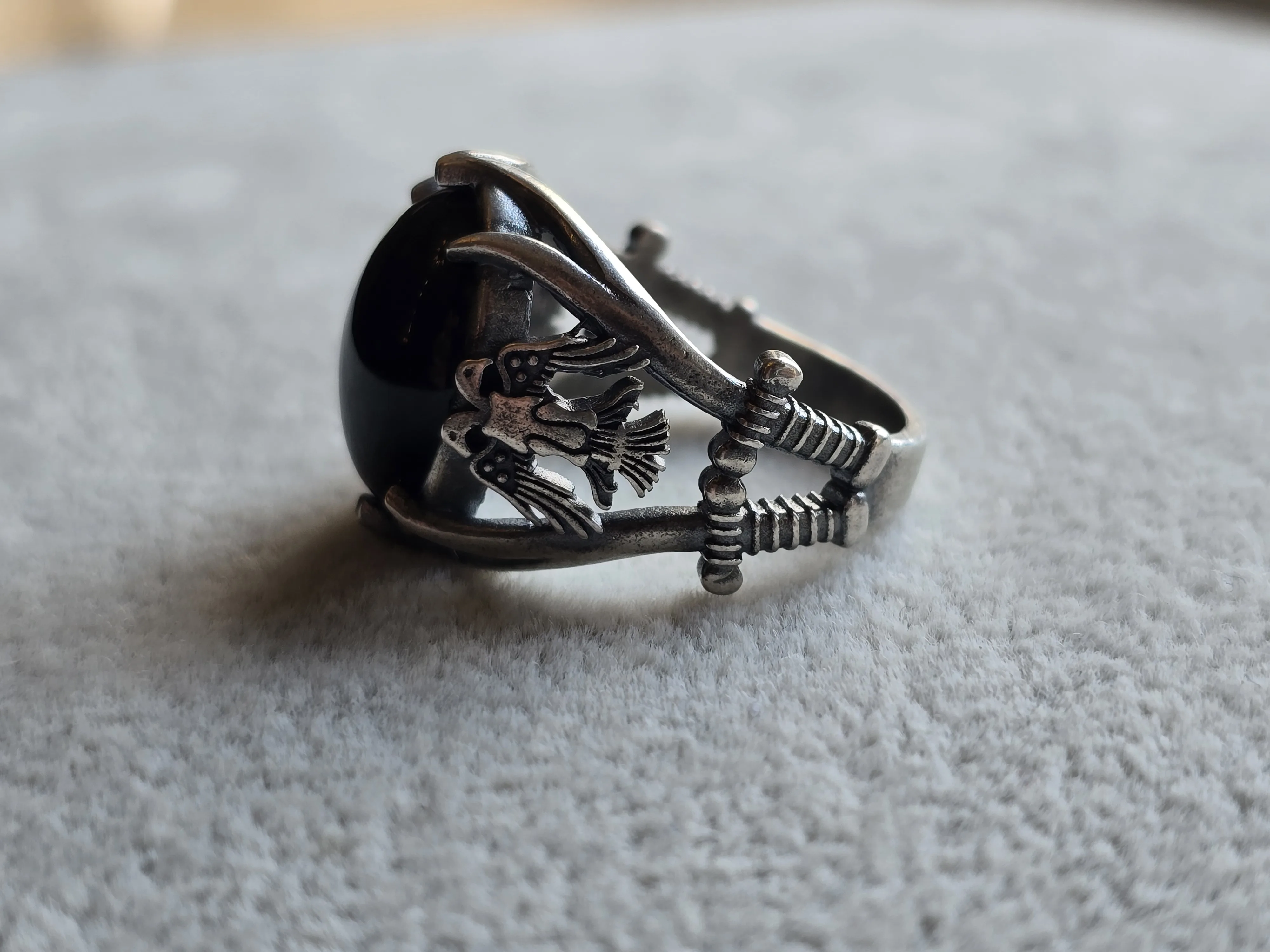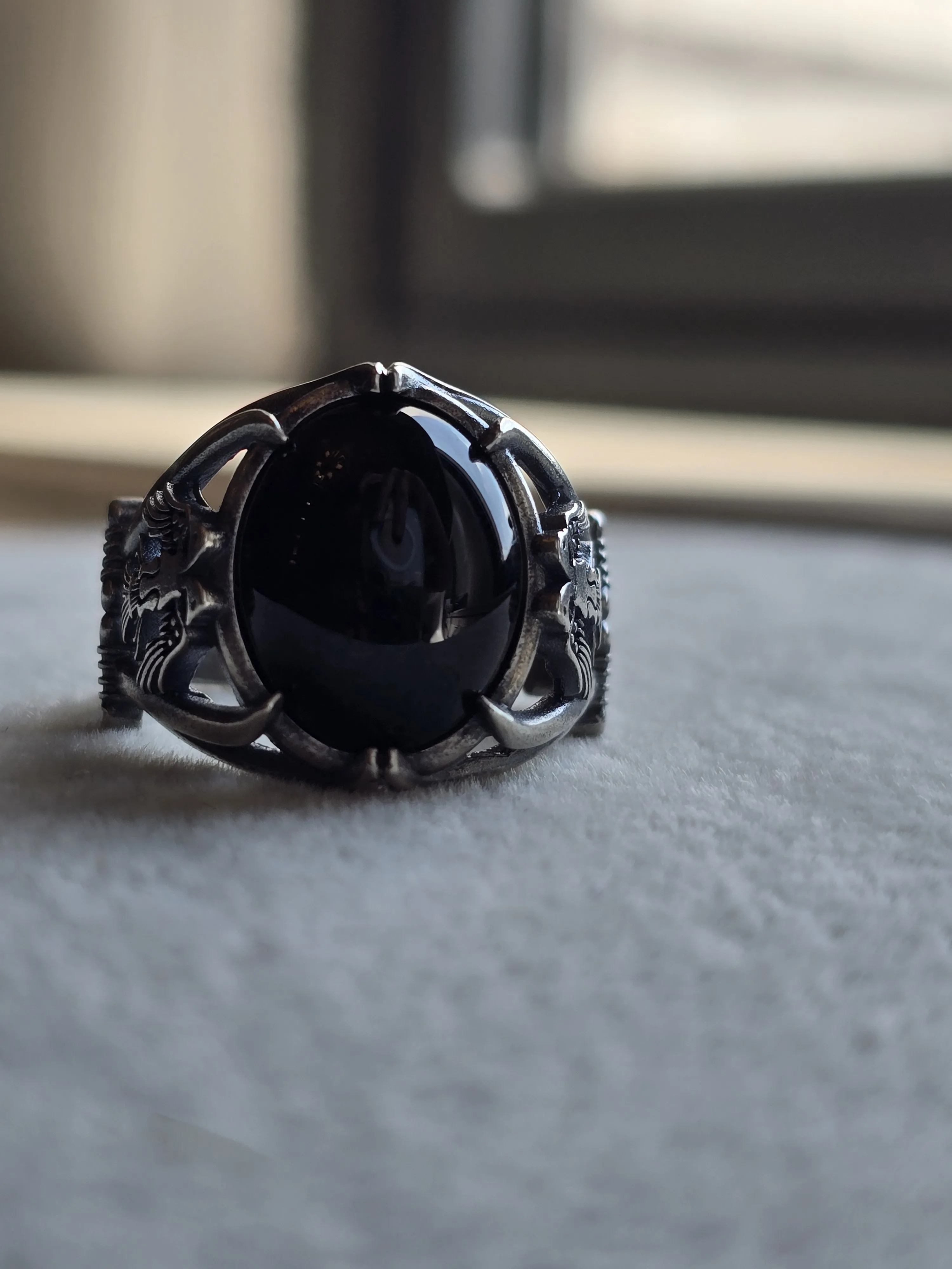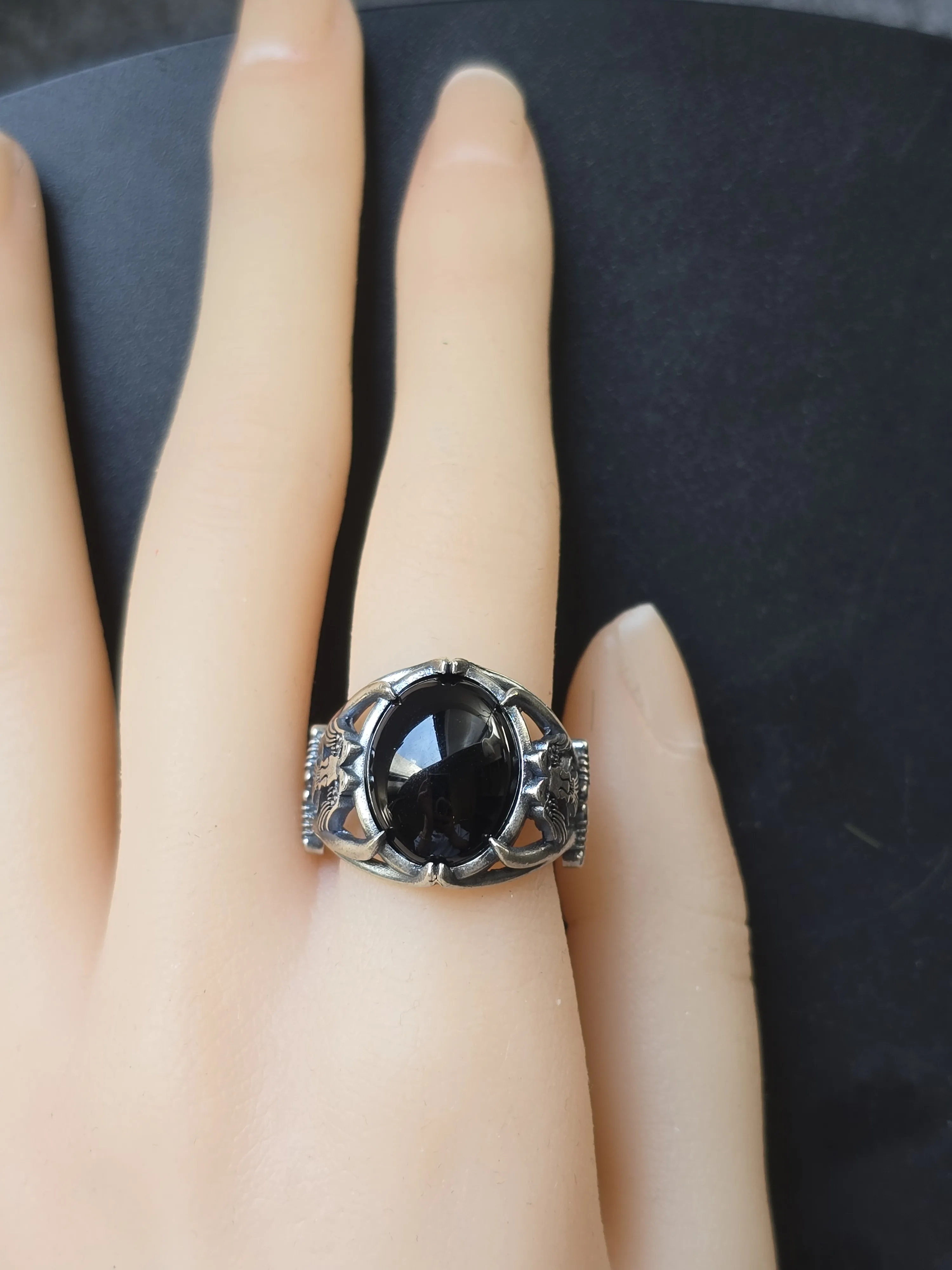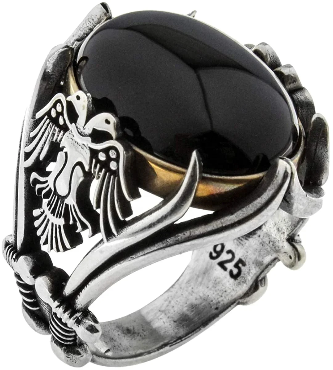 Wholesale Black Onyx Cubic Zirconia Signet Man Jewelry Custom Ottoman Tugra Turkish Silver Rings Men