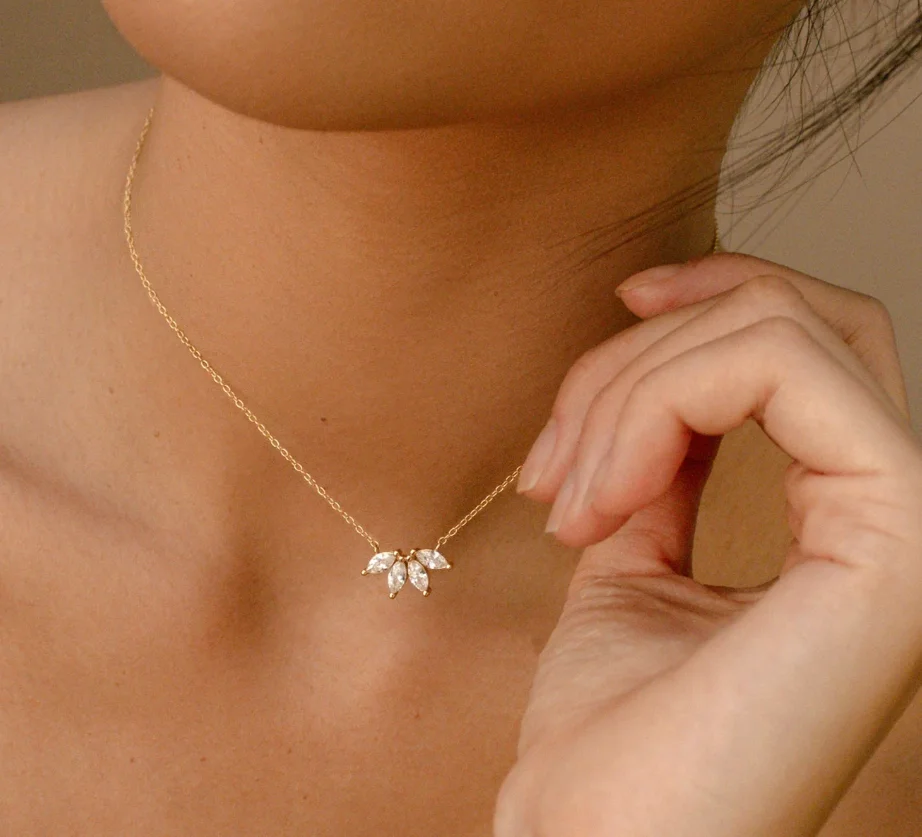 925 Sterling Silver Lab Grown Diamond Flower Petal Pendant Necklace for Women Demi Fine Jewelry Custom Design Factory Wholesale