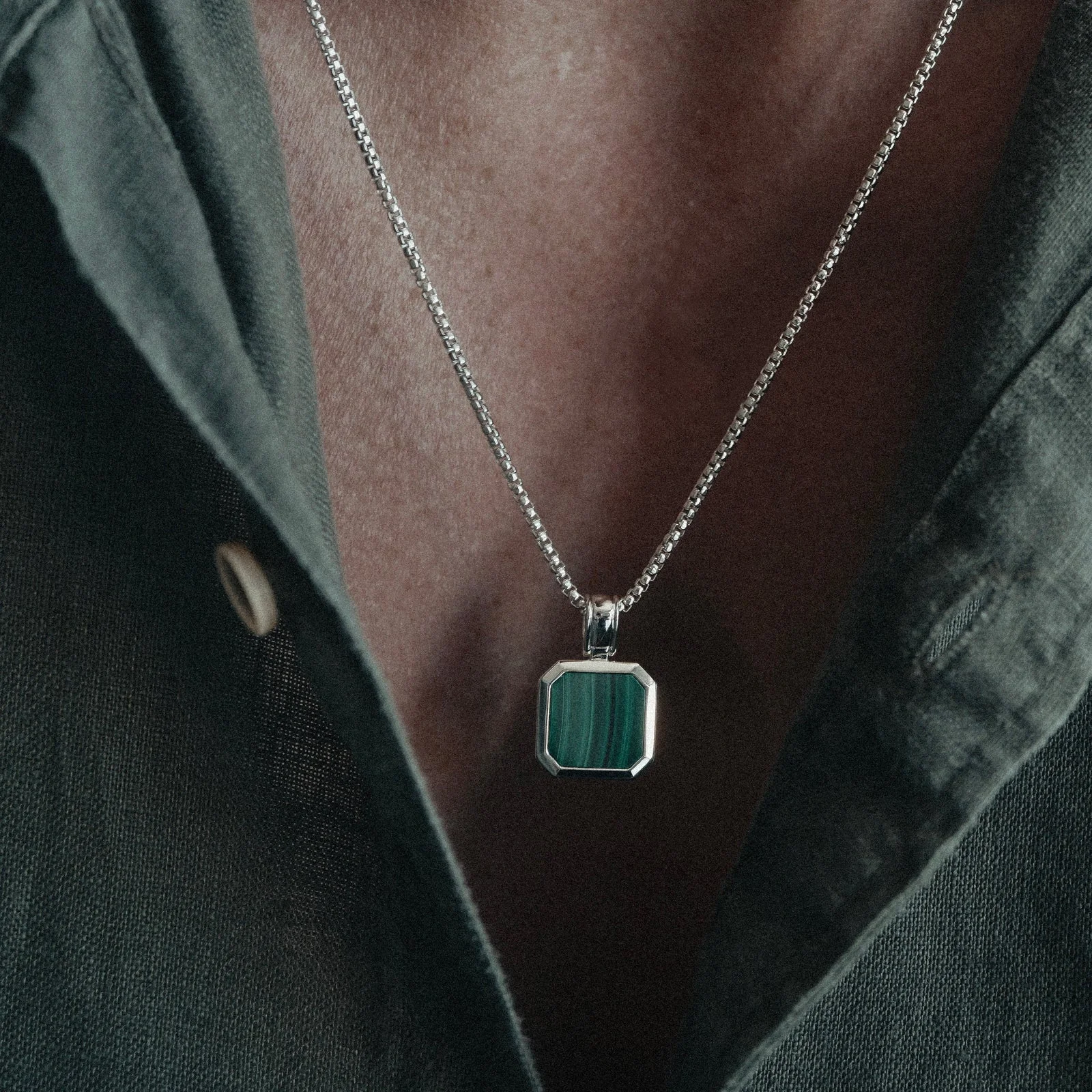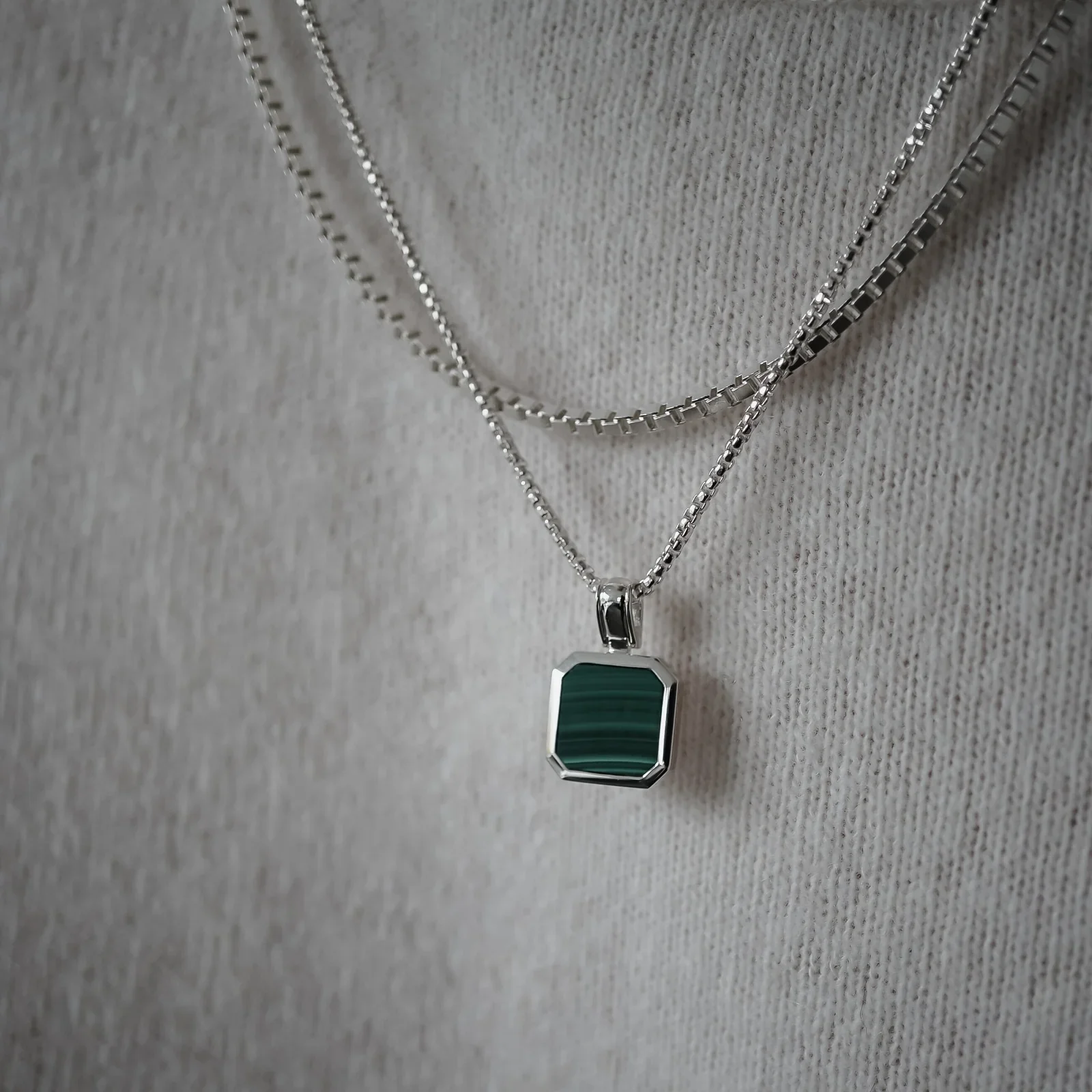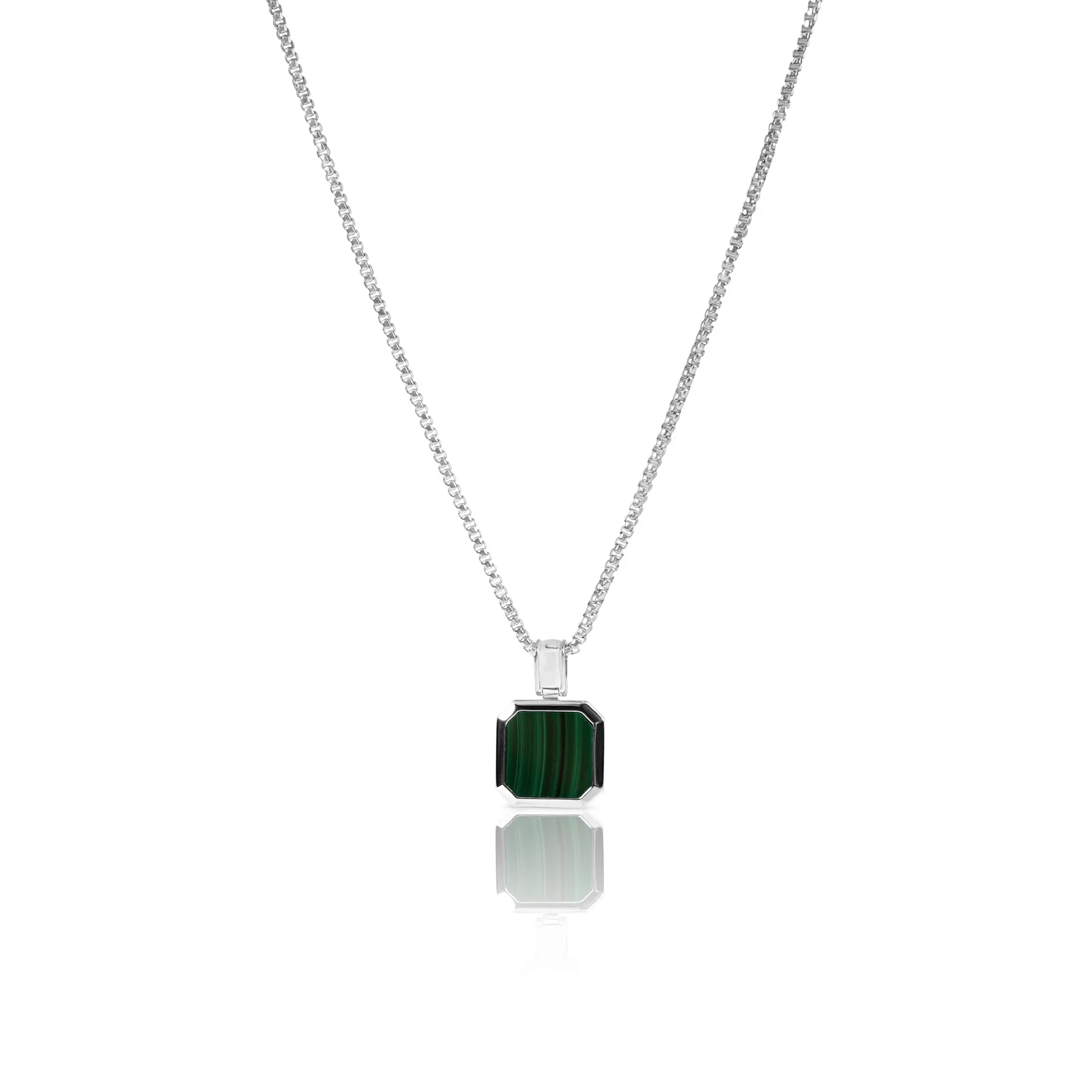 Customizable Fine Necklace 925 Sterling Silver Jewelry Geometric Gemstone Malachite Necklace Natural 925