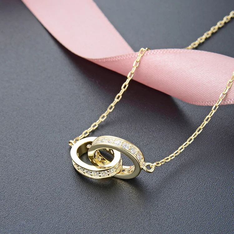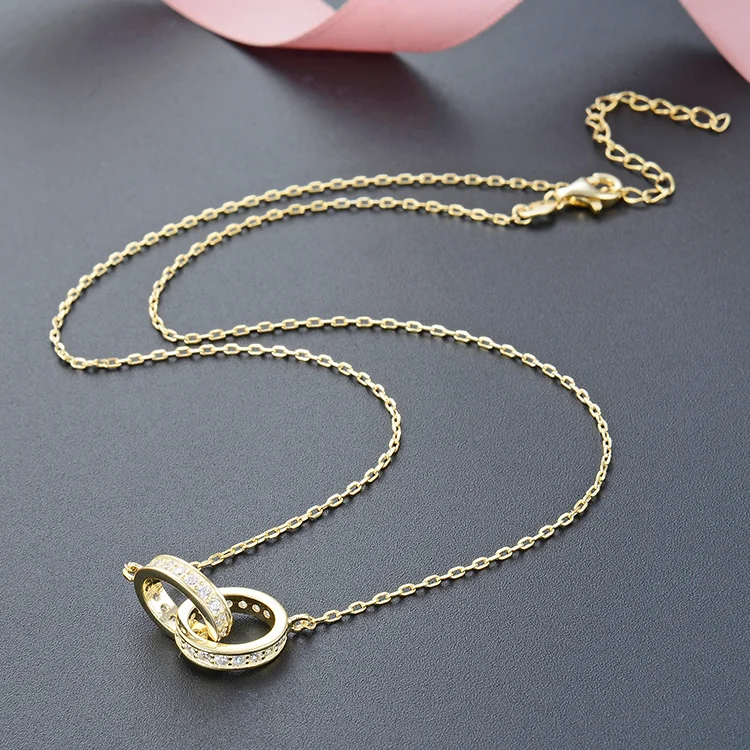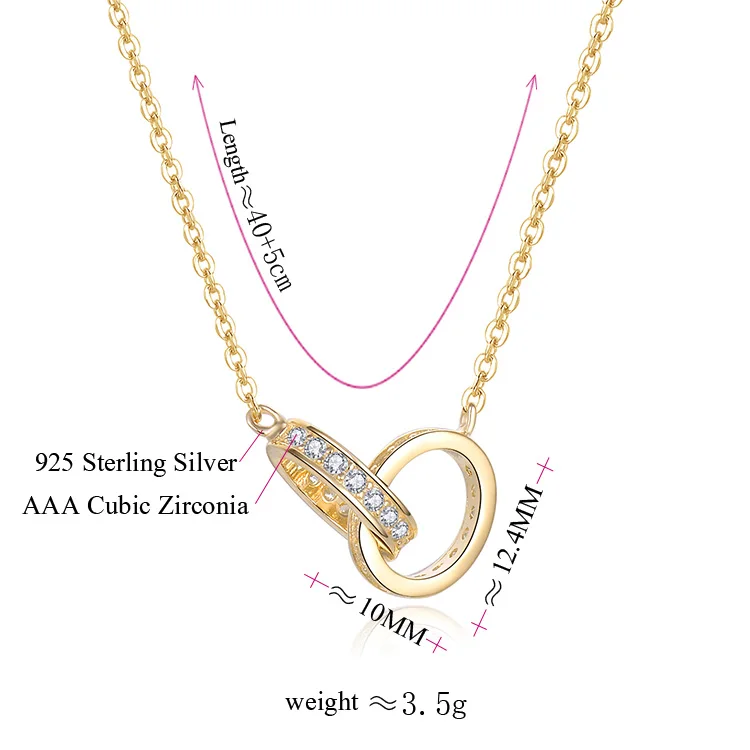 POLIVA 925 Sterling Silver Women's Pendant Necklace Gold Plated with Zircon Simple Rose Gold Chain for Valentine's Day Weddings