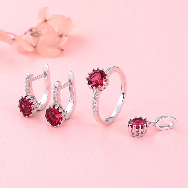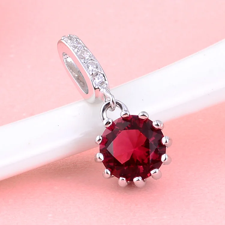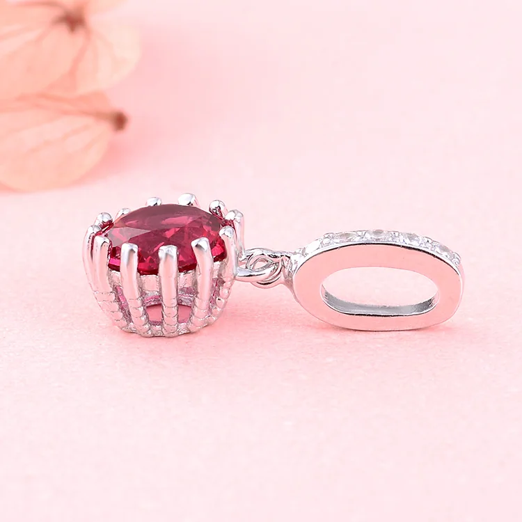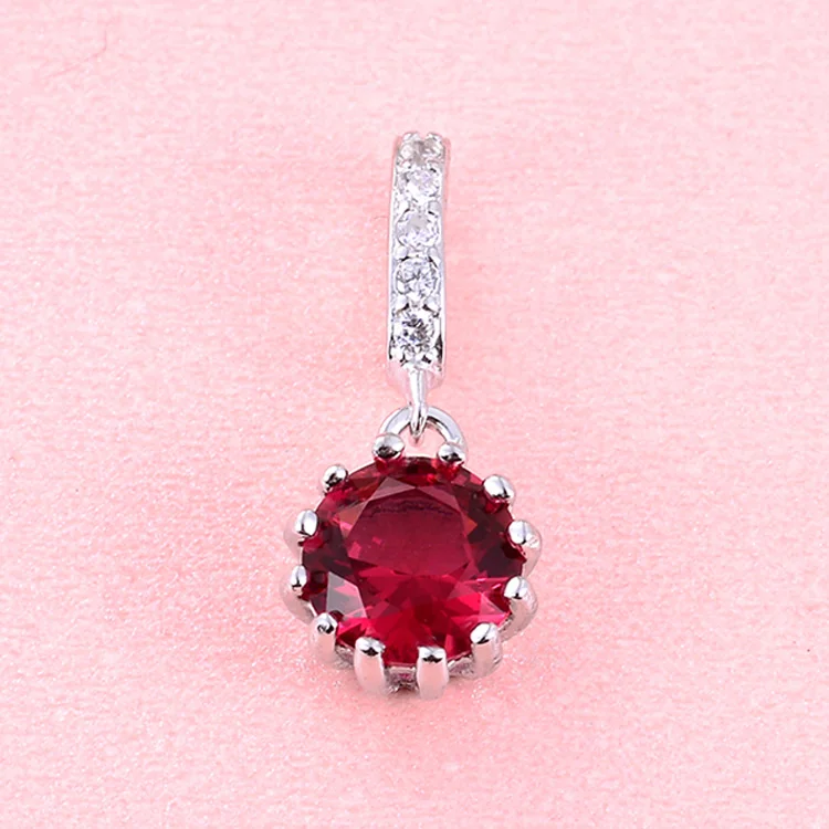 POLIVA Elegant Wedding Jewelry 925 Sterling Silver Pendants 3A Crystal Rhodium Plated Ruby Pendant Stone
