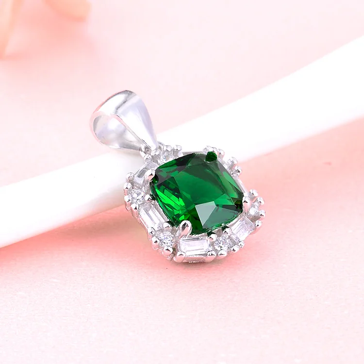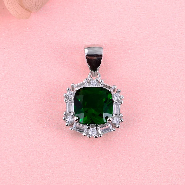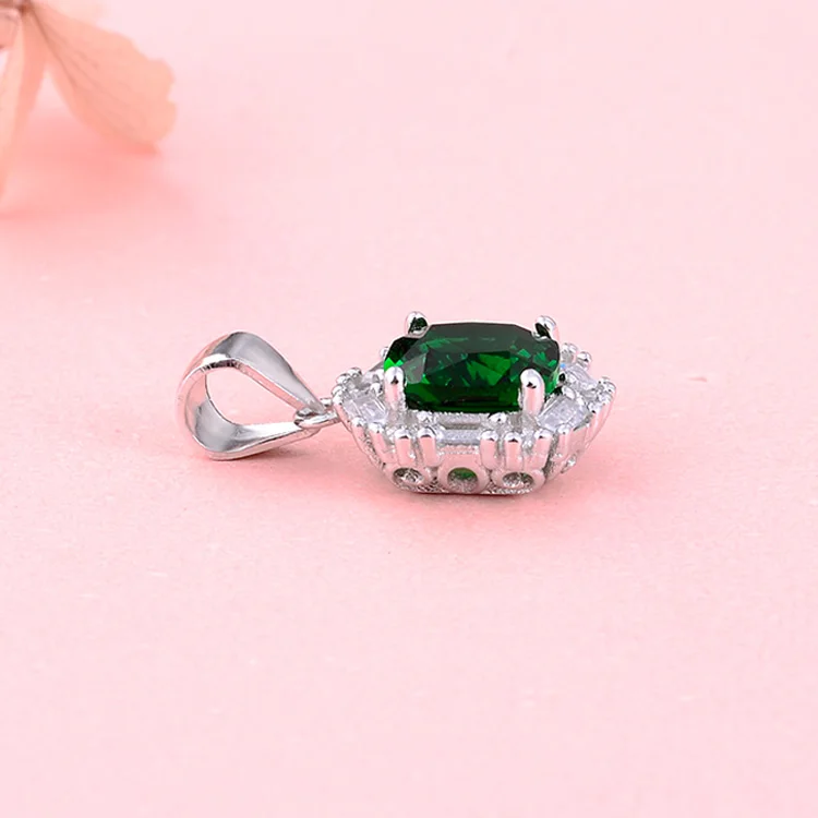 Classic 925 Sterling Silver Jewelry Pendants Aaa Crystal Luxury Green Emerald Pendant
