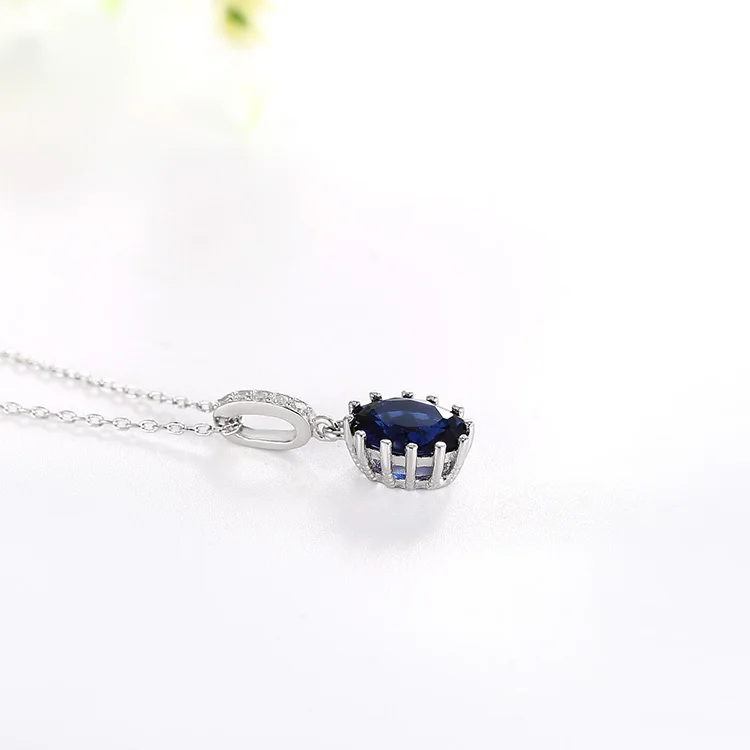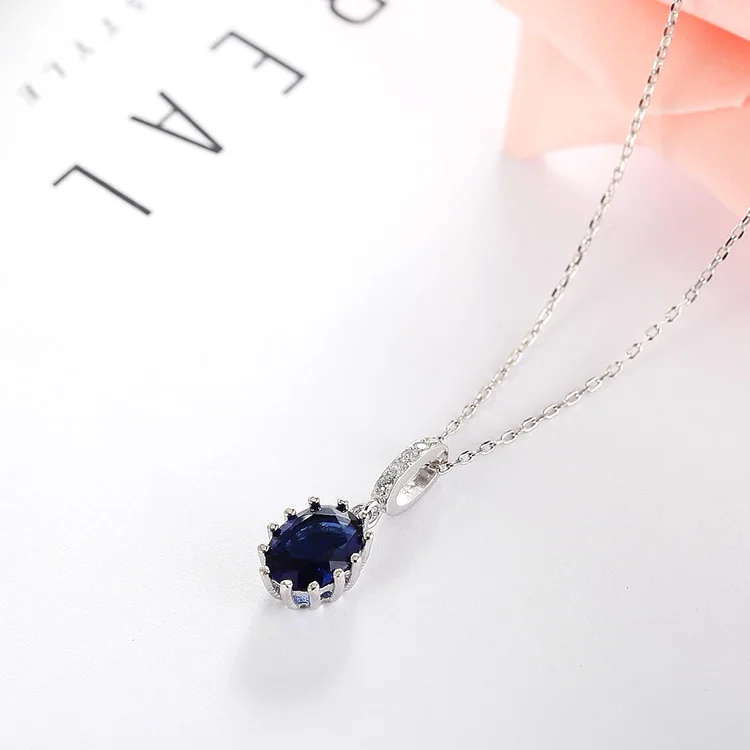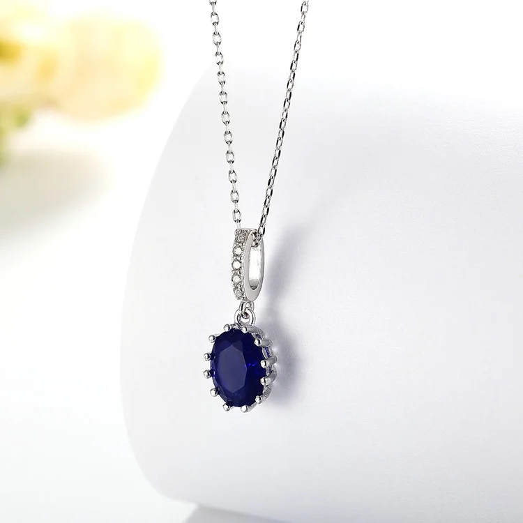 Wedding Luxury 925 Sterling Silver Pendants Rhodium Plated Blue Sapphire Oval Shape 3A Crystal Pendant