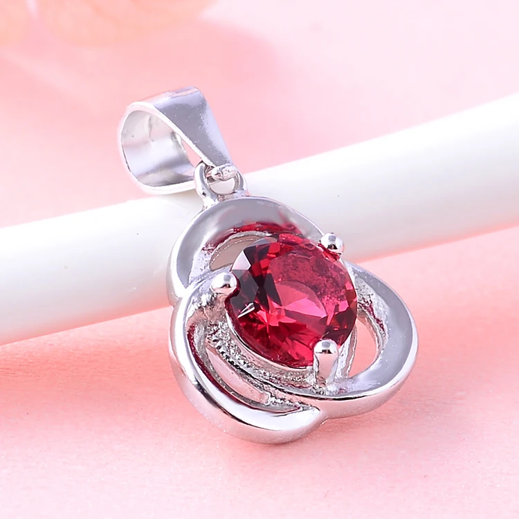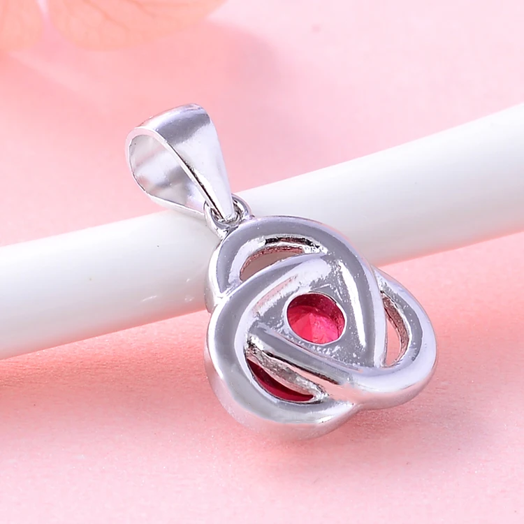 POLIVA Engagement Jewelry 925 Sterling Silver Pendants Rhodium Plated Flower Shape Ruby Crystal Pendant
