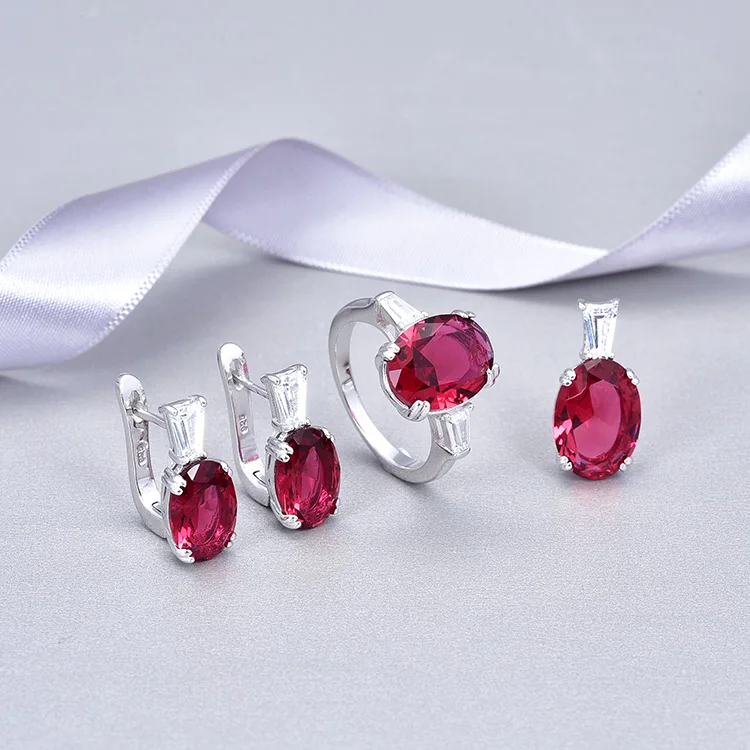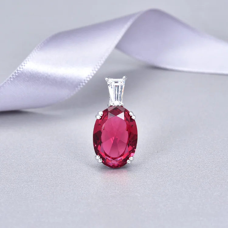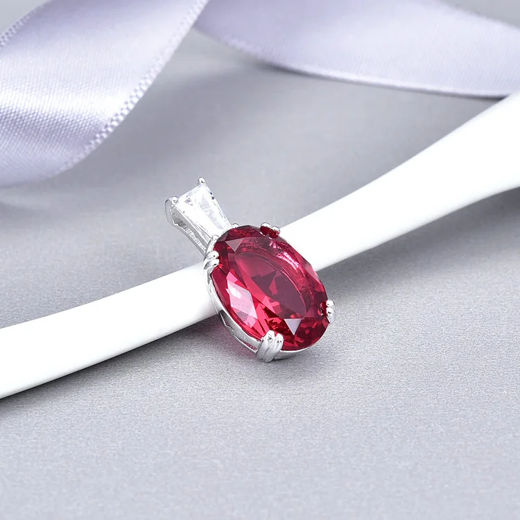 Wholesale 925 Sterling Silver AAA Crystal Oval Cut Luxury Ruby Natural Stone Pendant Fine Jewelry Pendants & Charms