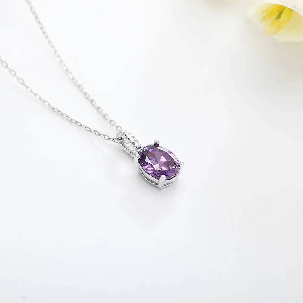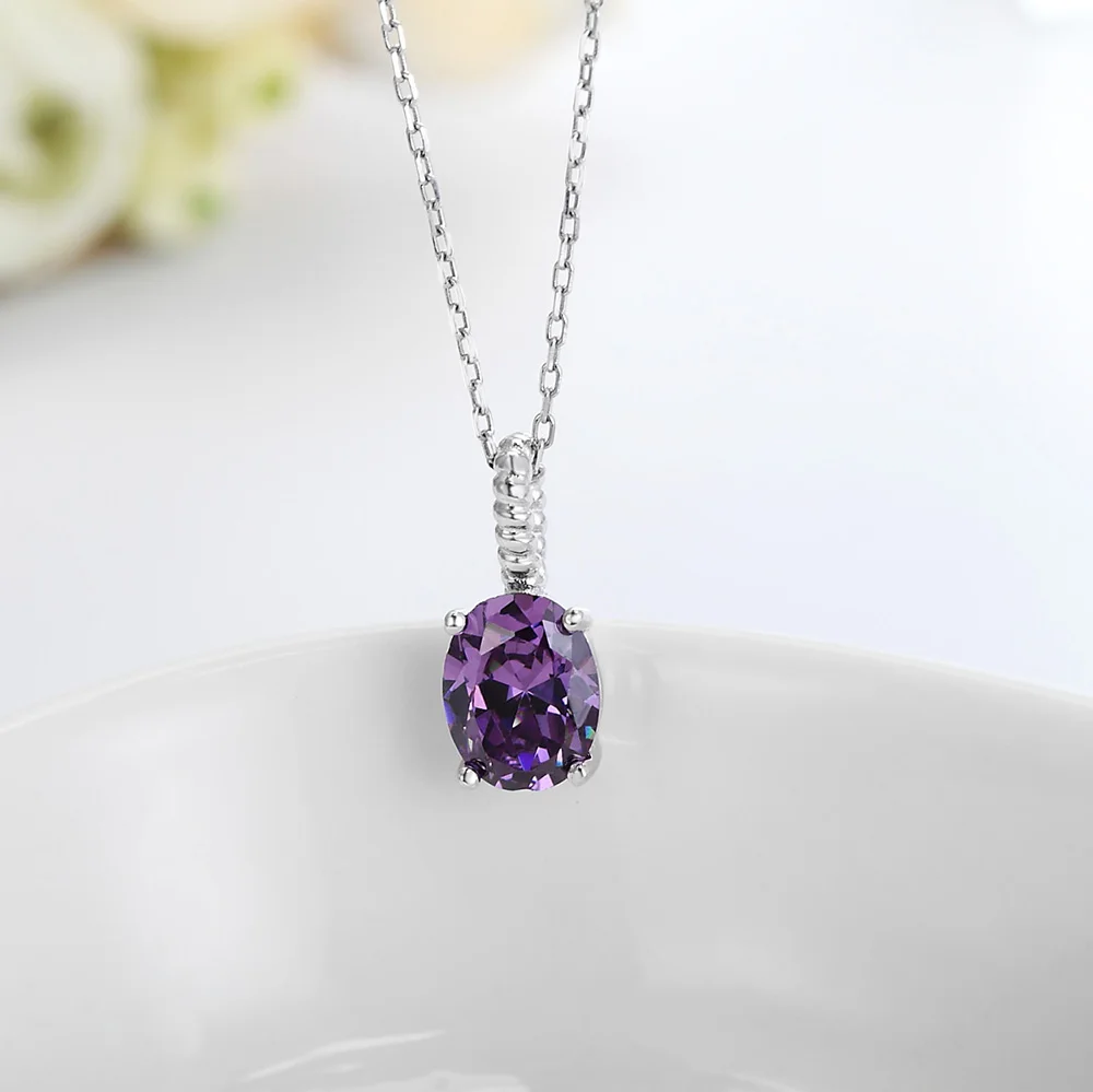 Poliva Elegant 925 Sterling Silver Jewelry Pendants Rhodium Plated Oval Shape Amethyst 3A Crystal Pendant