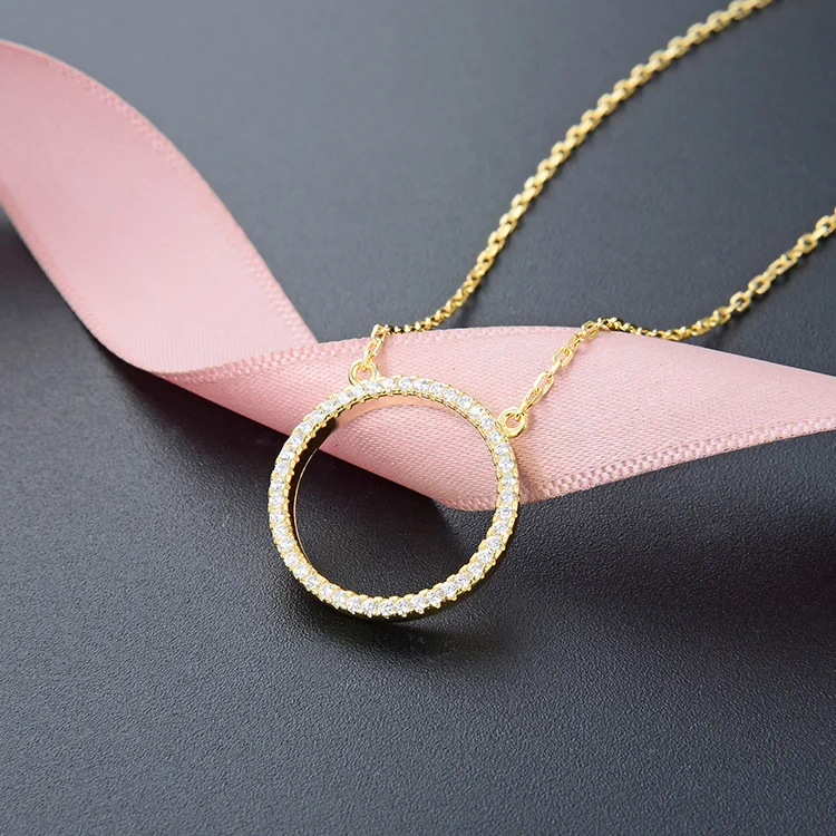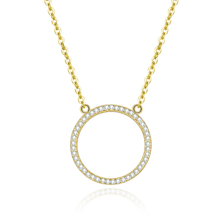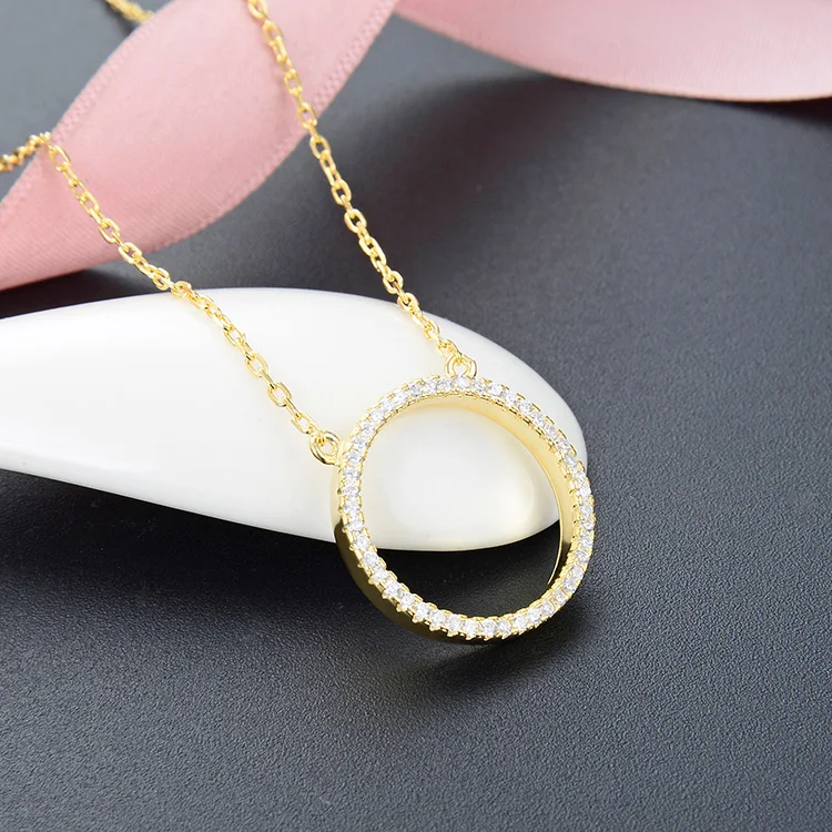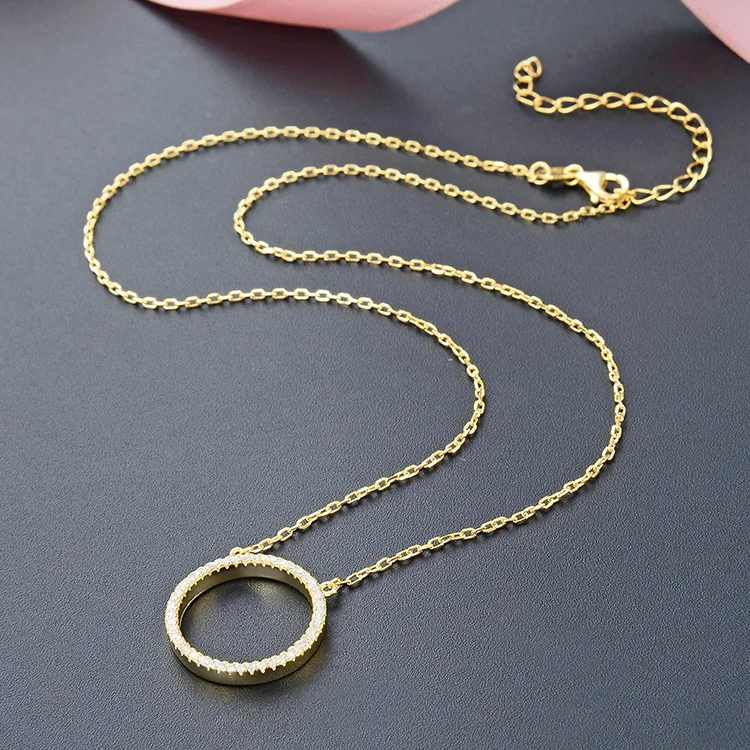 925 Sterling Silver Necklace for Women Gold Plated Aaa Cubic Zirconia Circle Pendant Chic Diamond Chains for Party Occasions