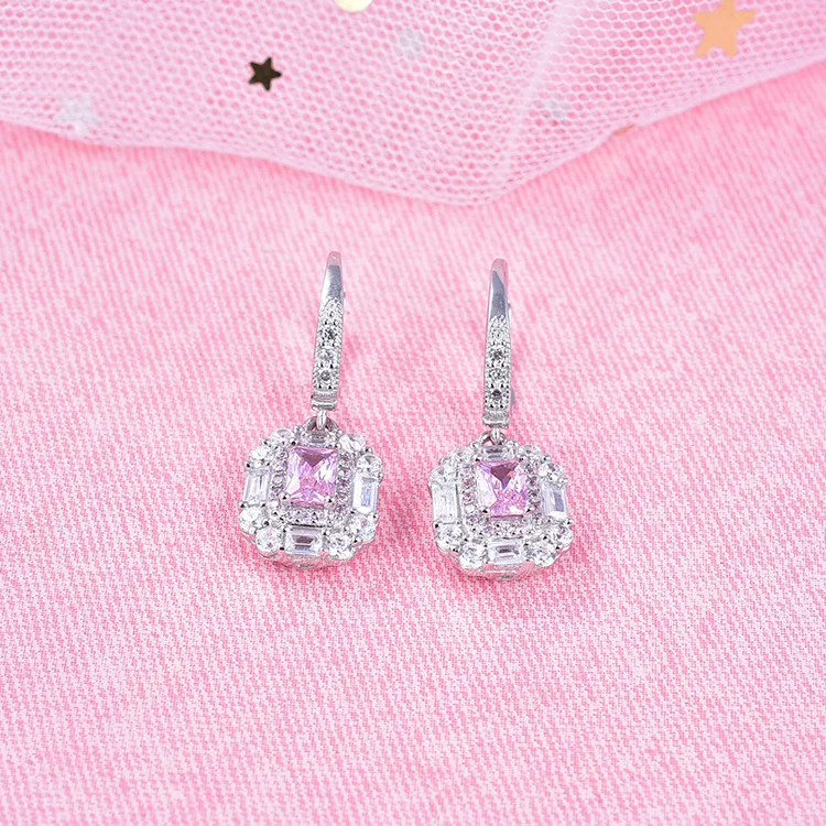925 Sterling Silver Luxury Clip-On Earrings with Pink Diamond Drop Gold Plated Trendy Style for Wedding