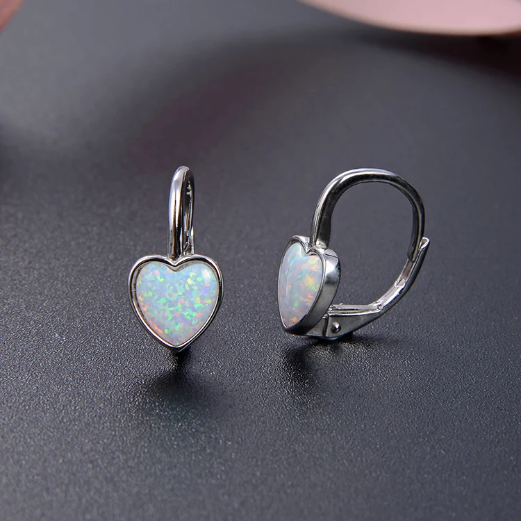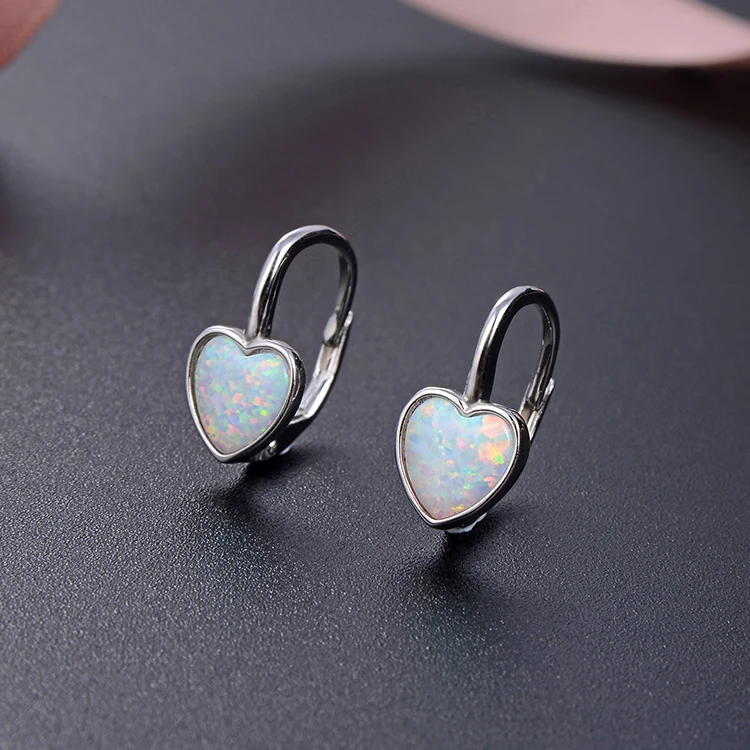 Heart Shape White Opal Women Earring Jewelry 925 Designer Earrings