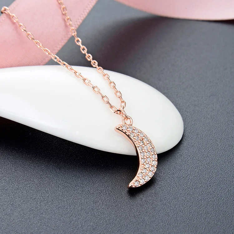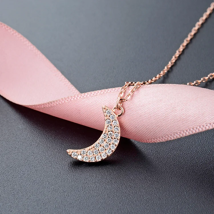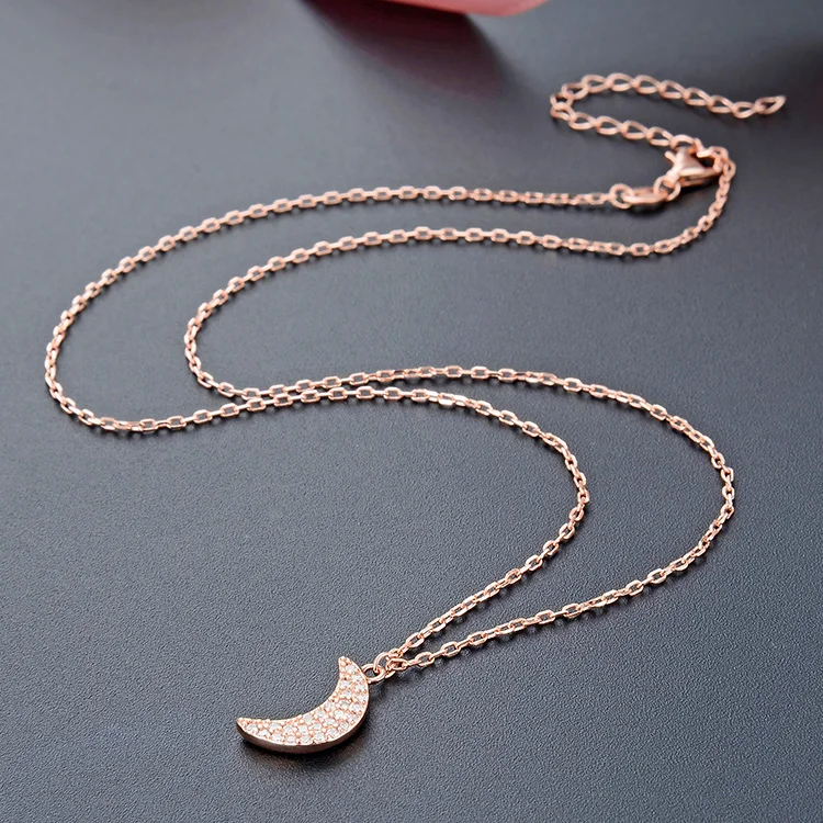 POLIVA Jewelry Moon Necklace Rose Gold Plated 925 Sterling Silver Italy Pendant Necklaces Cable Chains AAA Zircon Women's Cute