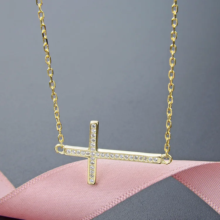 Fancy Elegant Jewelry 925 Sterling Silver Necklaces 3A Cubic Zirconia Rhodium Plated Cross Christian Necklace