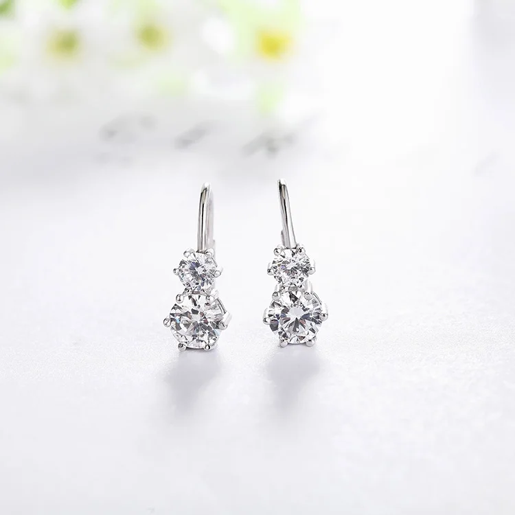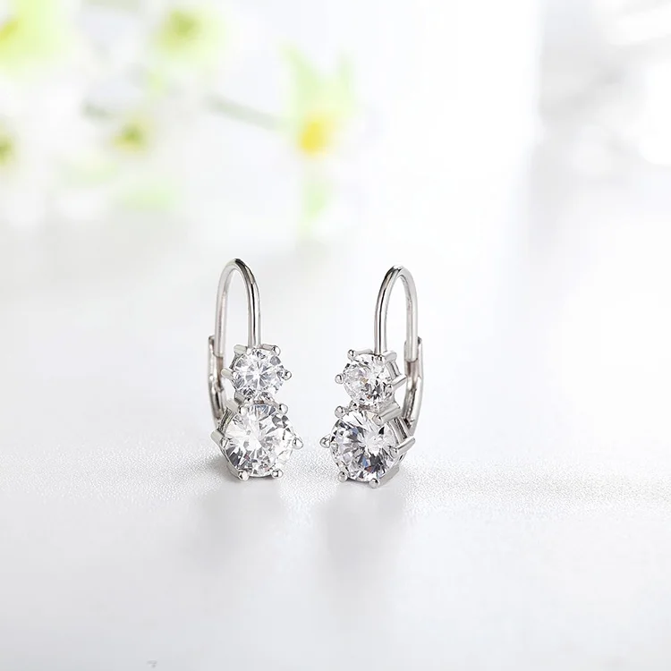 925 Sterling Silver High-End Lock Double Diamond Earrings Gold Plating Trendy Leverback Design for Weddings France Style Clip-On