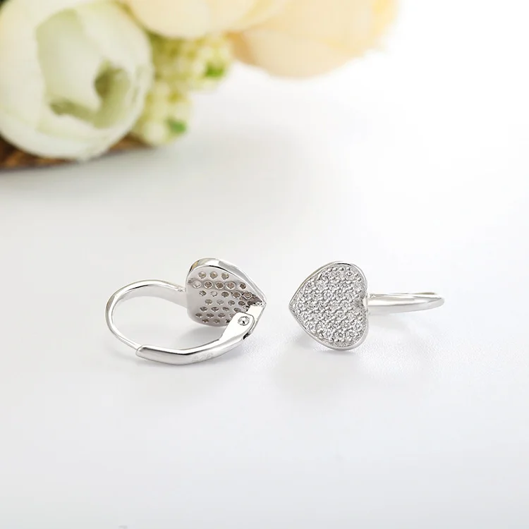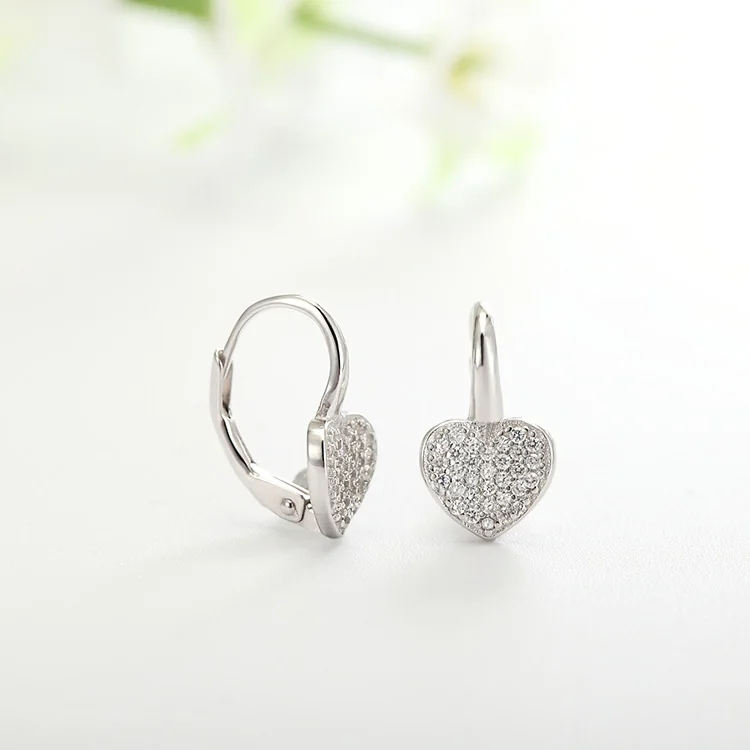 Girls Cute 925 Sterling Silver AAA Cubic Zirconia Earrings France Lock Leverback with Love Heart Gold Plated Trendy Style