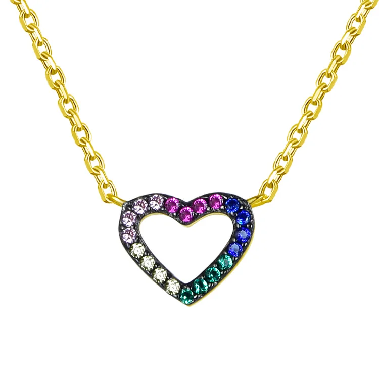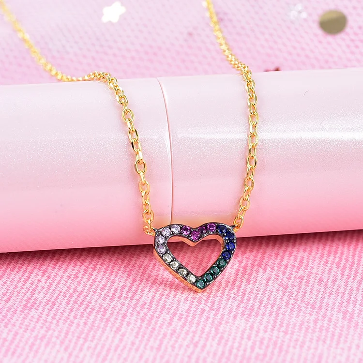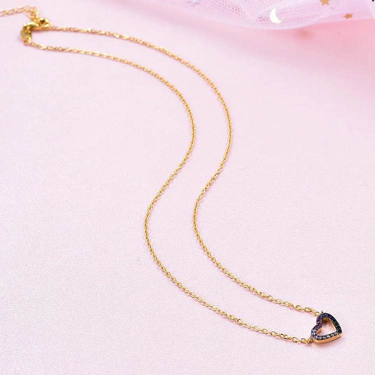 Simple 18K Gold Plated Necklace Jewelry 925 Sterling Silver rainbow Heart Pendants Gold Necklace