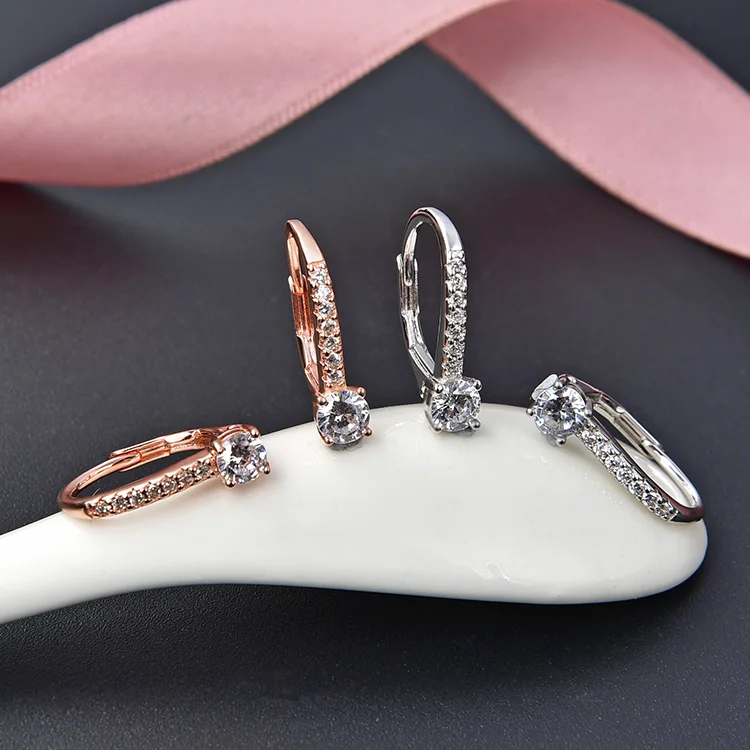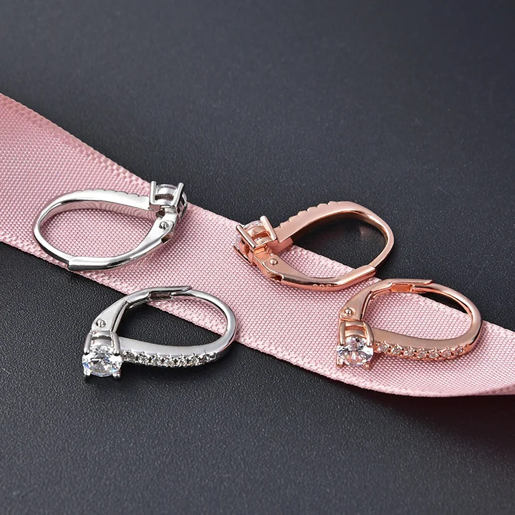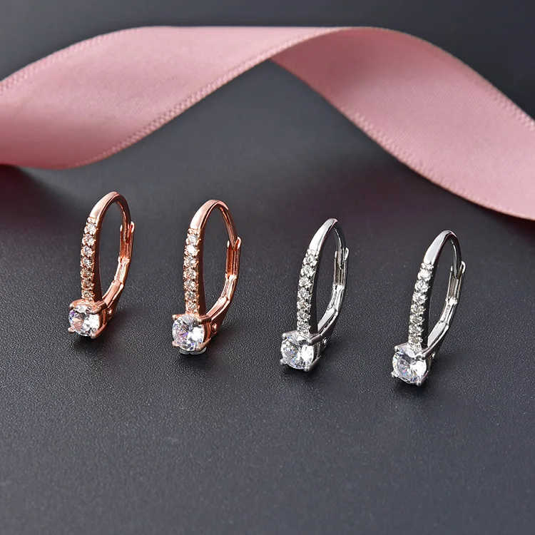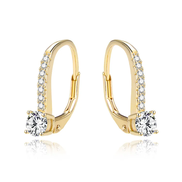 925 Sterling Silver Huggie Earring with AAA Cubic Zirconia Rhodium Plating and Gold Finish Simple Fashion France Lock Design