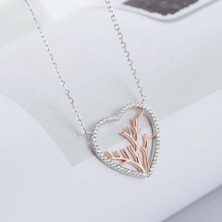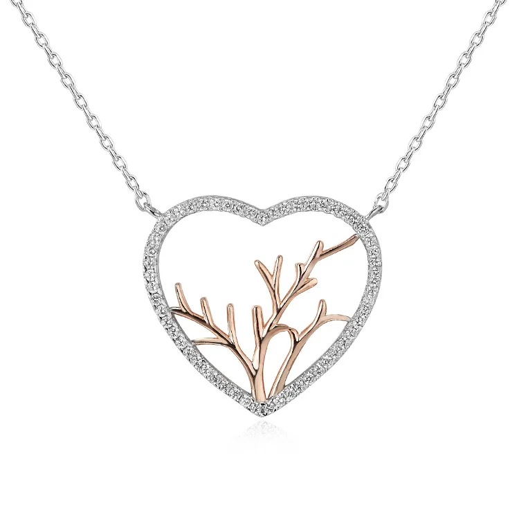 Poliva 925 Sterling Silver 2 Tone Necklaces Aaa Cubic Zirconia Heart Shape Necklace Tree of Life