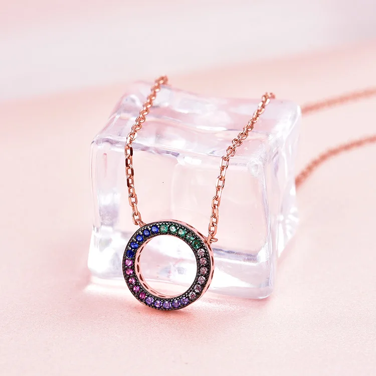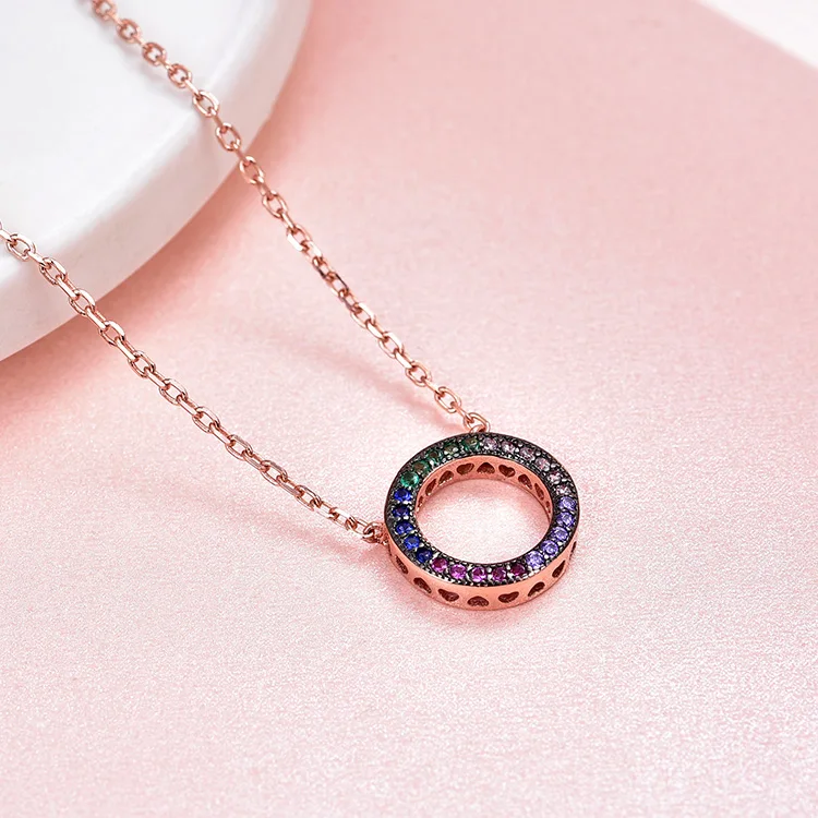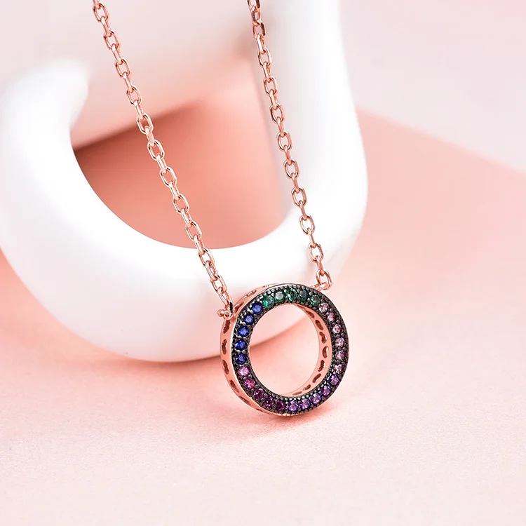 Promotion Wholesale Fashion Rose Gold Circle of Life Necklaces Colorful CZ 925 Sterling Silver Necklace