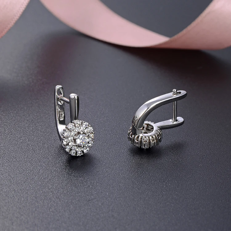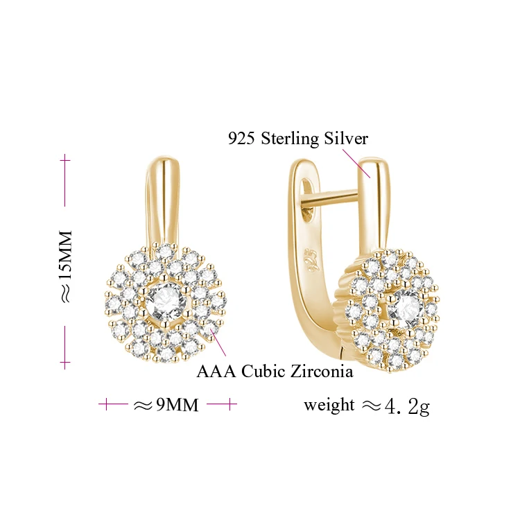 POLIVA 18K Gold Plated 925 Sterling Silver Engagement Earrings Floral Lock Design Zircon Stone Rose Gold Clip-On for Gifts