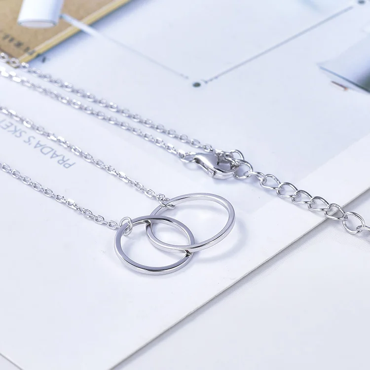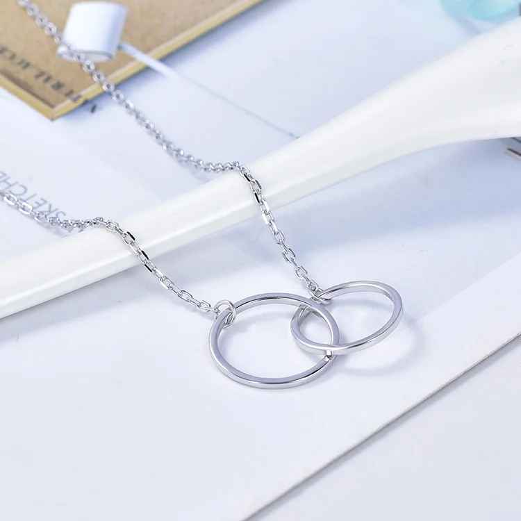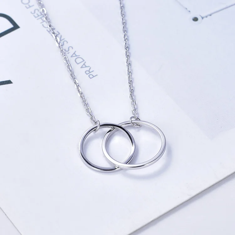 925 Sterling Silver Without Stone Double Lingking Circle Necklaces Never Be Apart Rose Women Necklace Gold