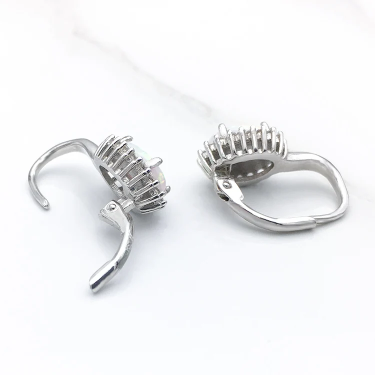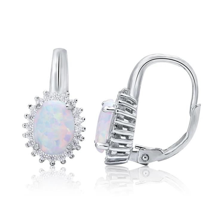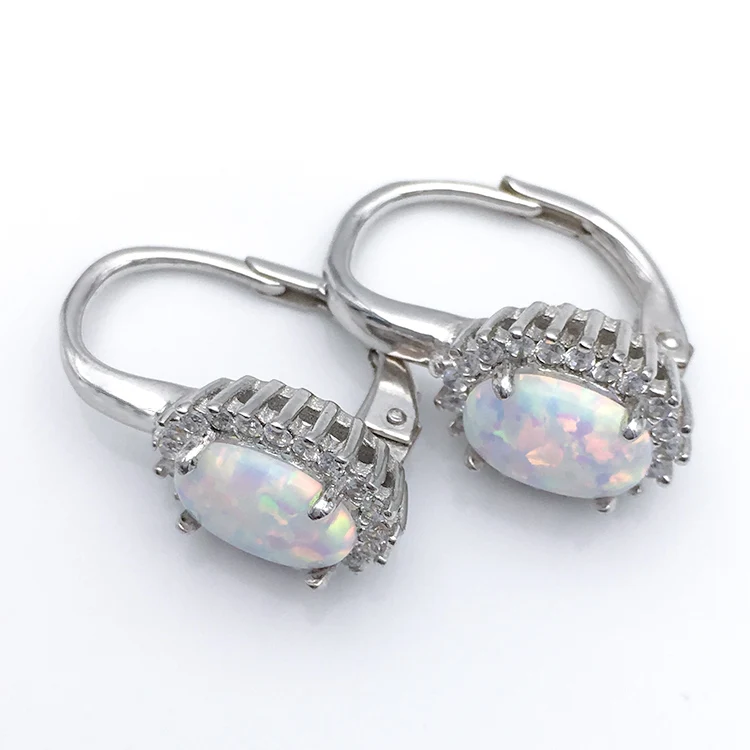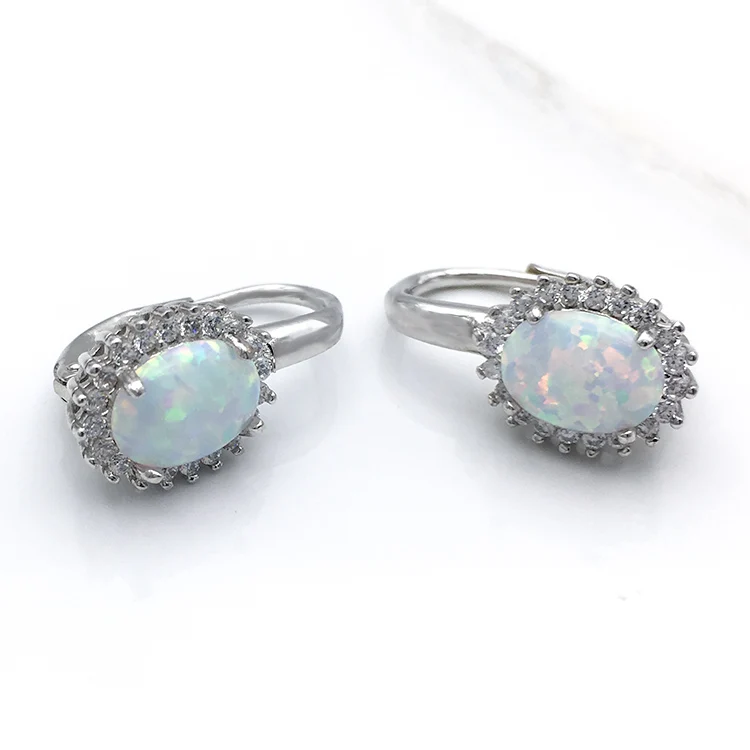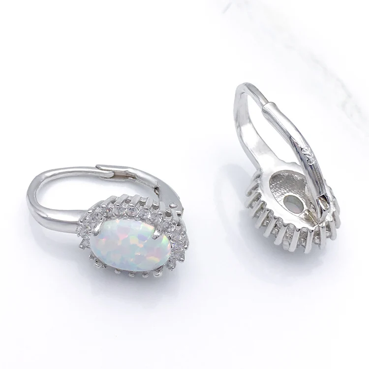 POLIVA Rhodium Plated Zircon Accessories 925 Sterling Silver Jewelry White Opal Earring