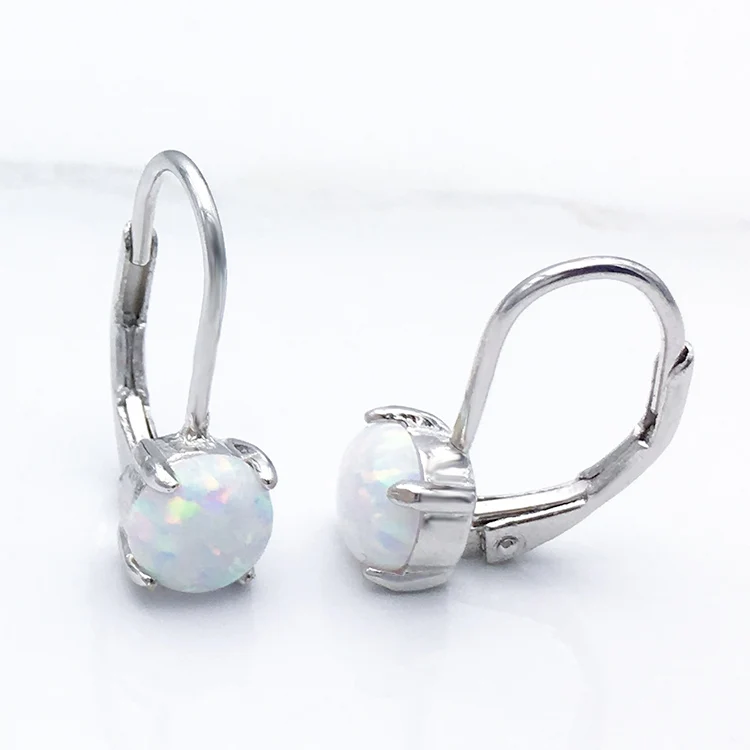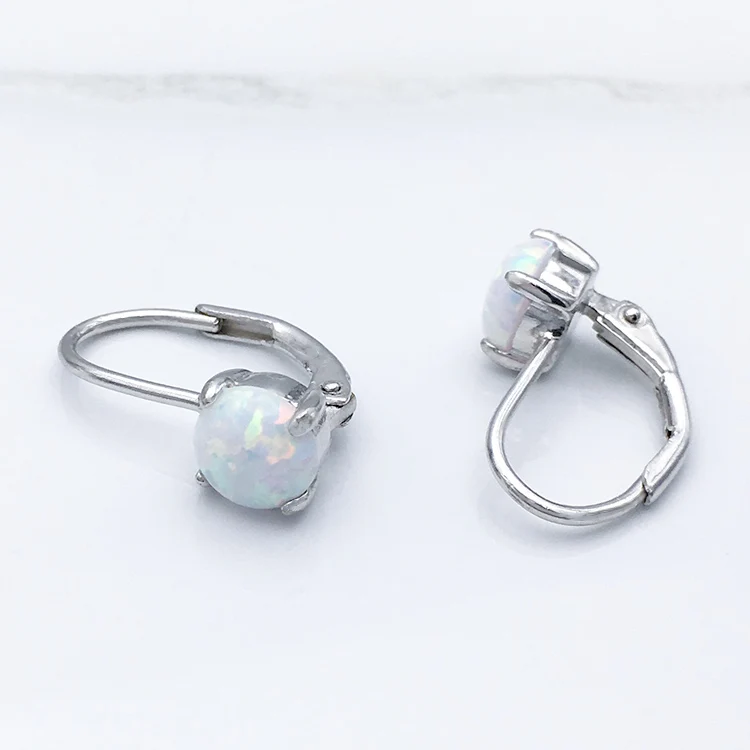 925 Sterling Accessories Woman Silver Jewellery Huggie Opal Earrings