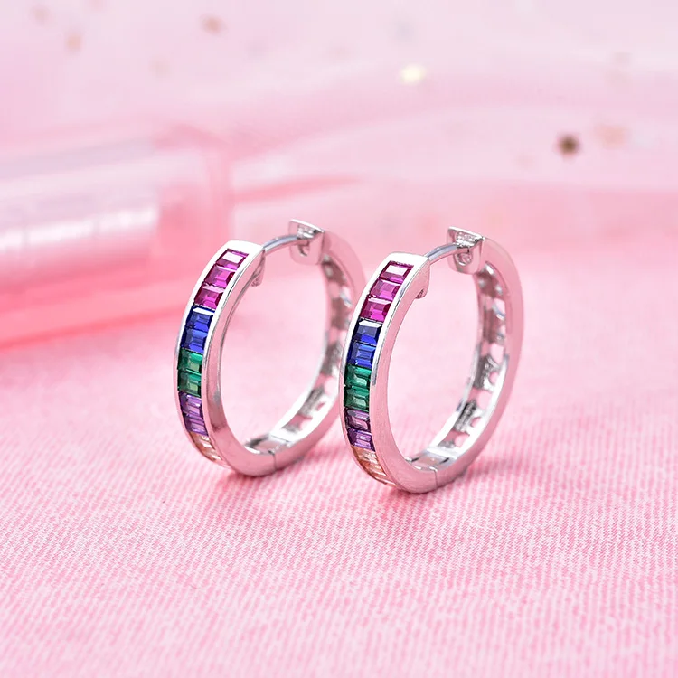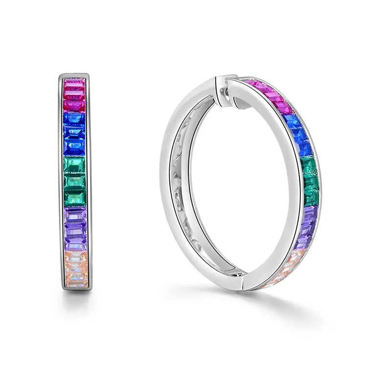 925 Sterling Silver Post Earrings with Trendy Rainbow Cubic Zirconia 30/25/20/15mm Gold Plated with Main Stone for Engagement