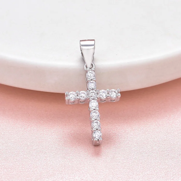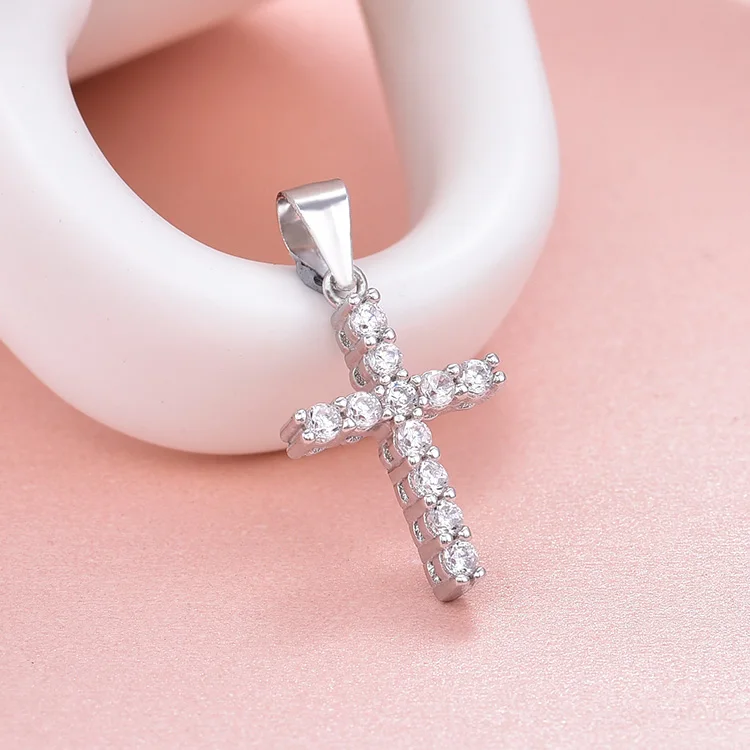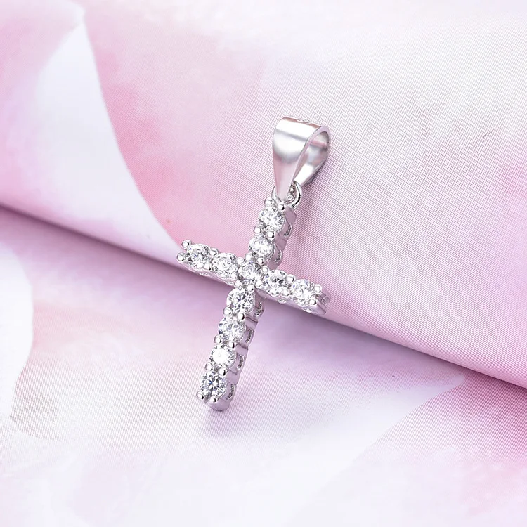 Beautiful Women Jewelry 925 Sterling Silver Pendants Aaa Cubic Zirconia Cross Pendant Chain Necklace