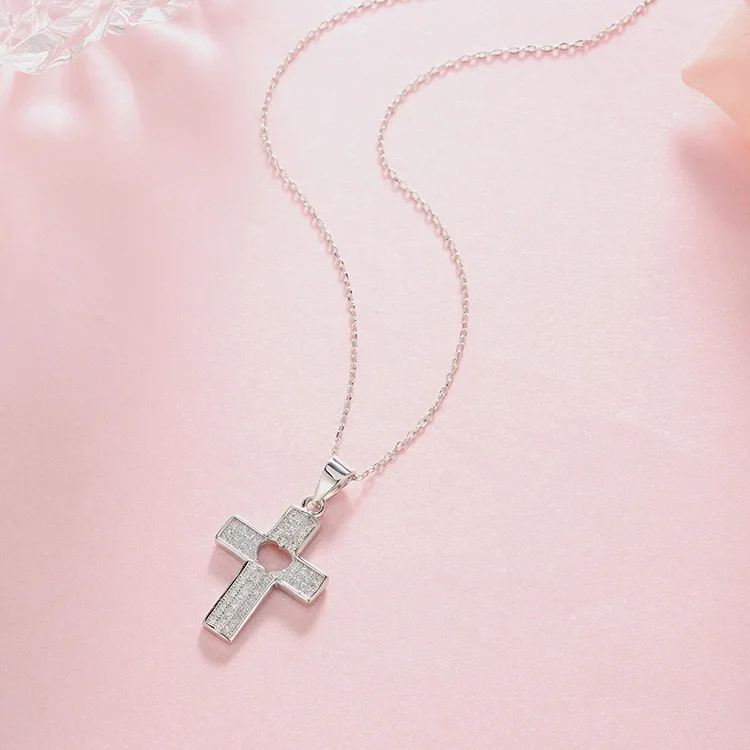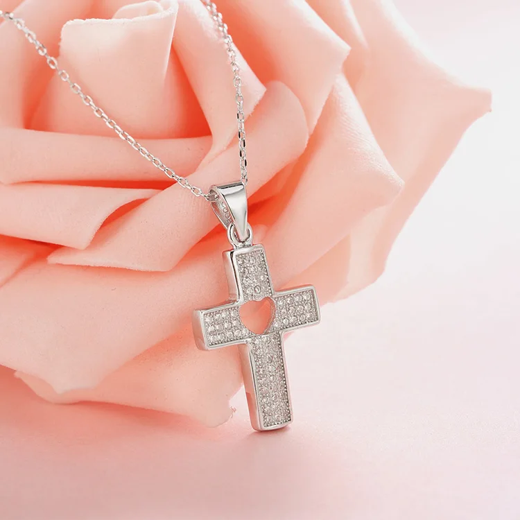 S925 Sterling Silver Cross Pendant Heart Hollow Out Statement Wedding Cocktail Party Necklace Pendant