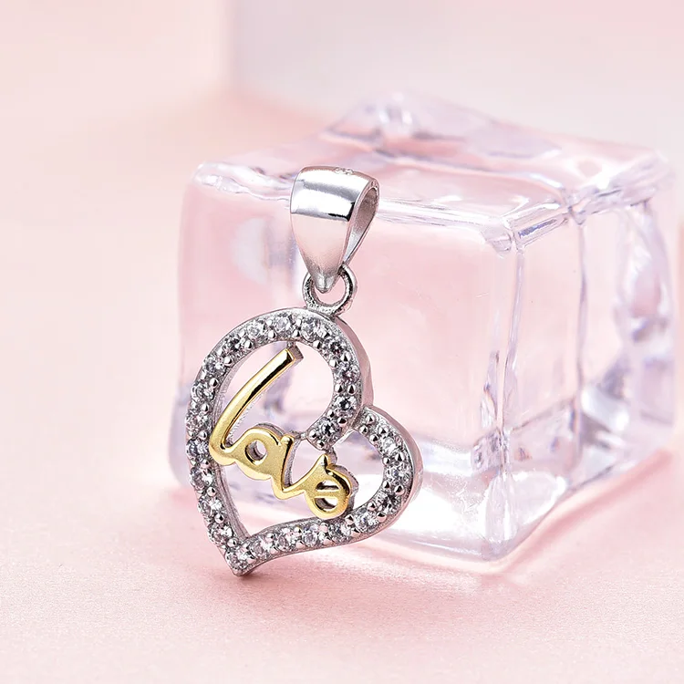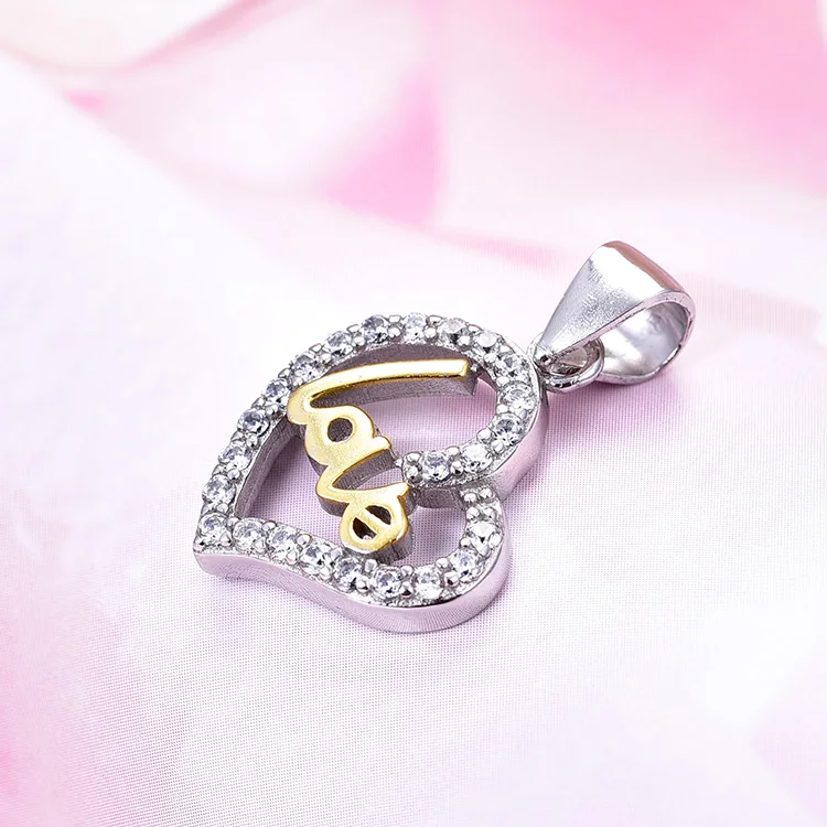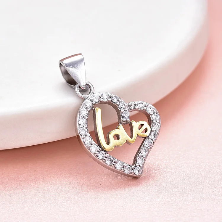 POLIVA Daily Wear 925 Sterling Silver Jewelry Pendants 2 Tone Plated Love Heart Shape Pendant
